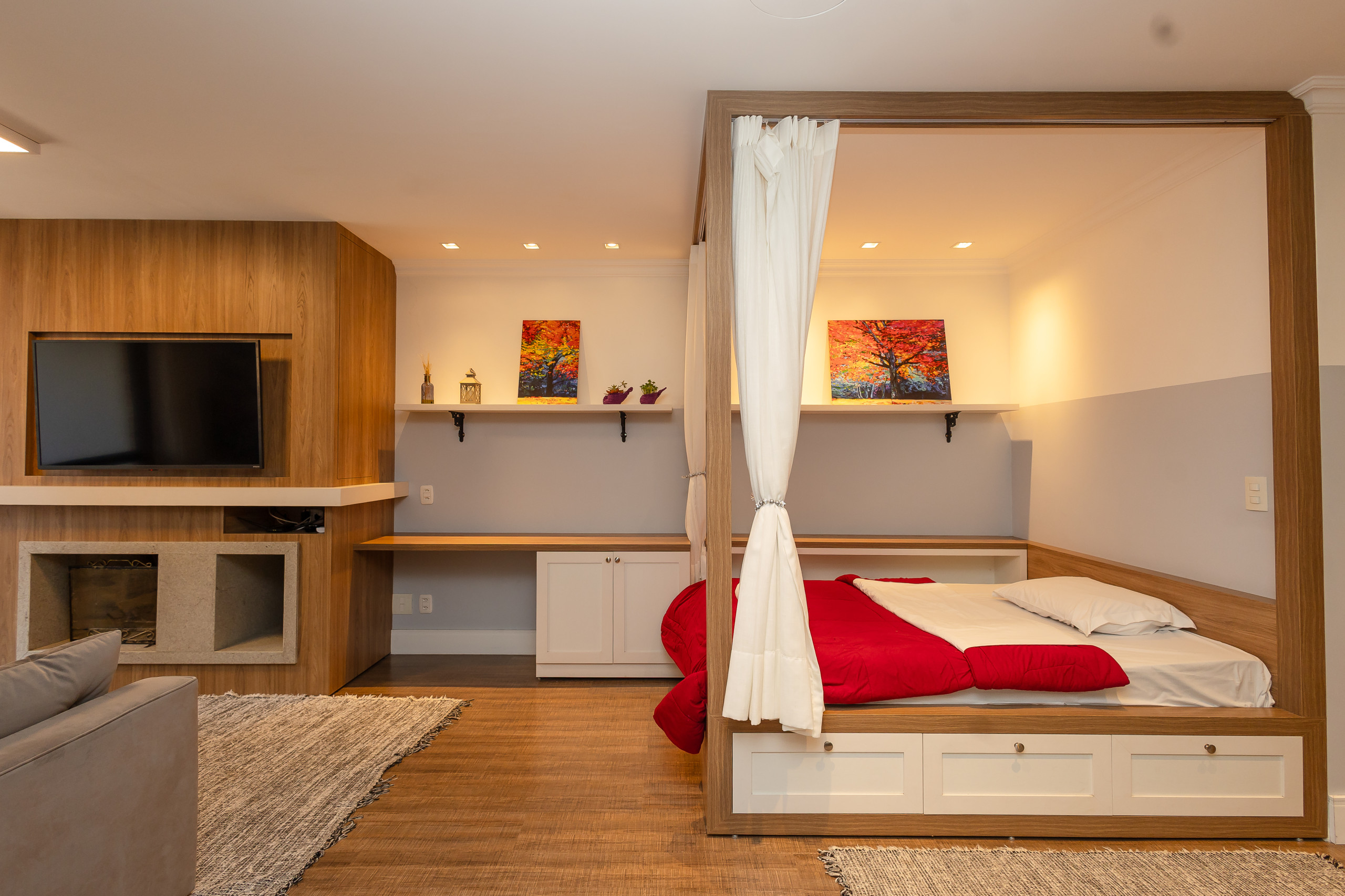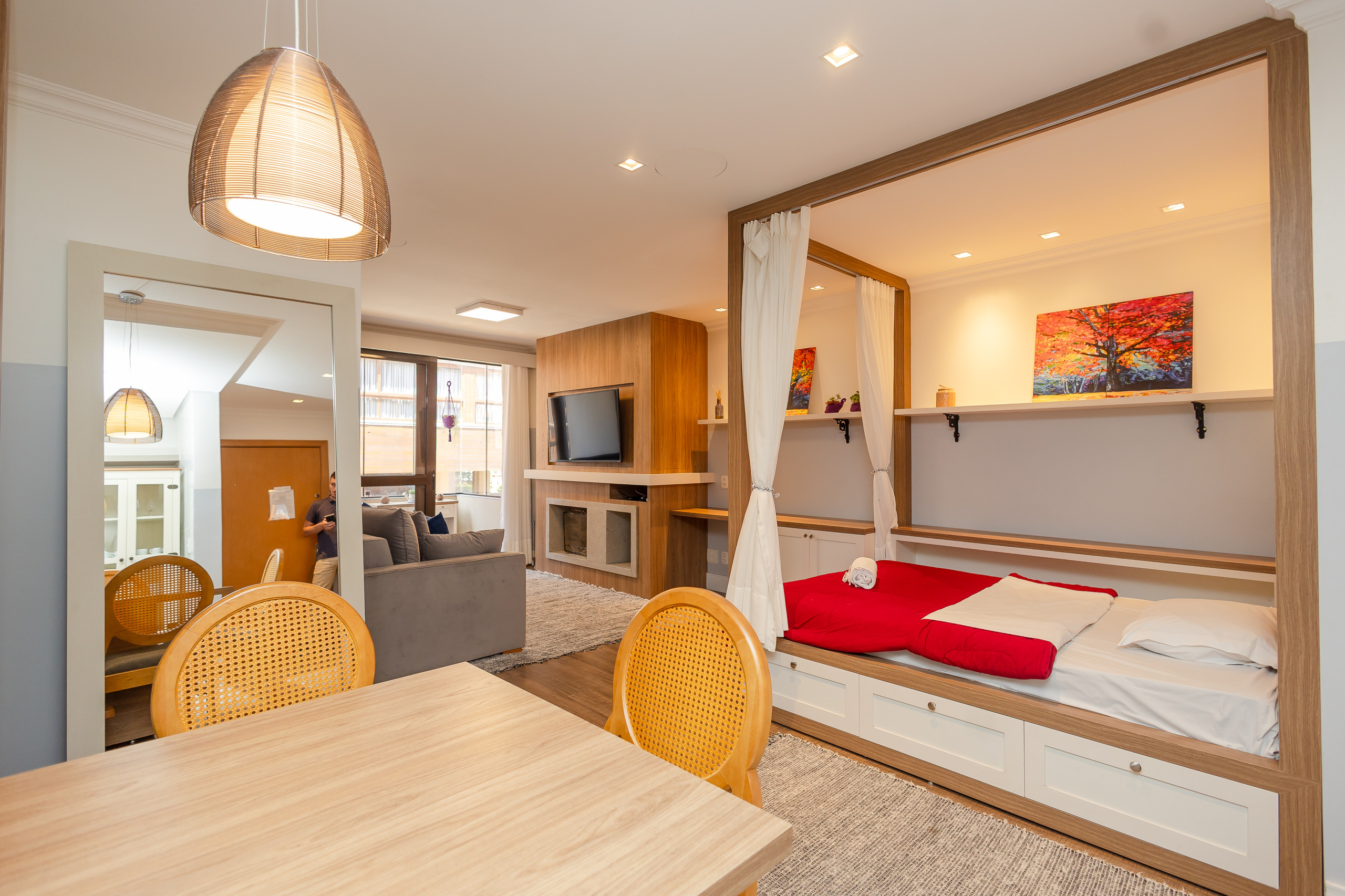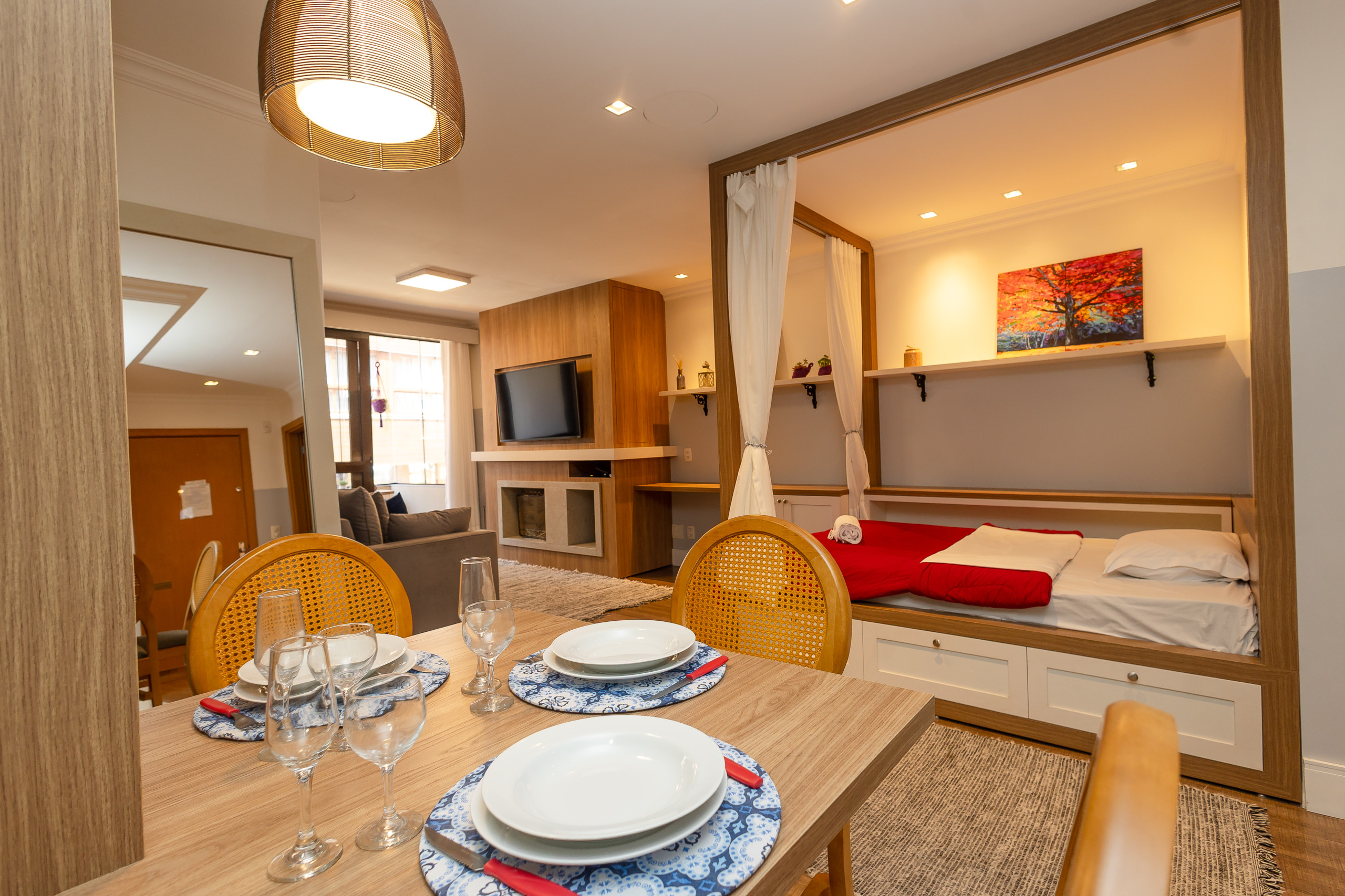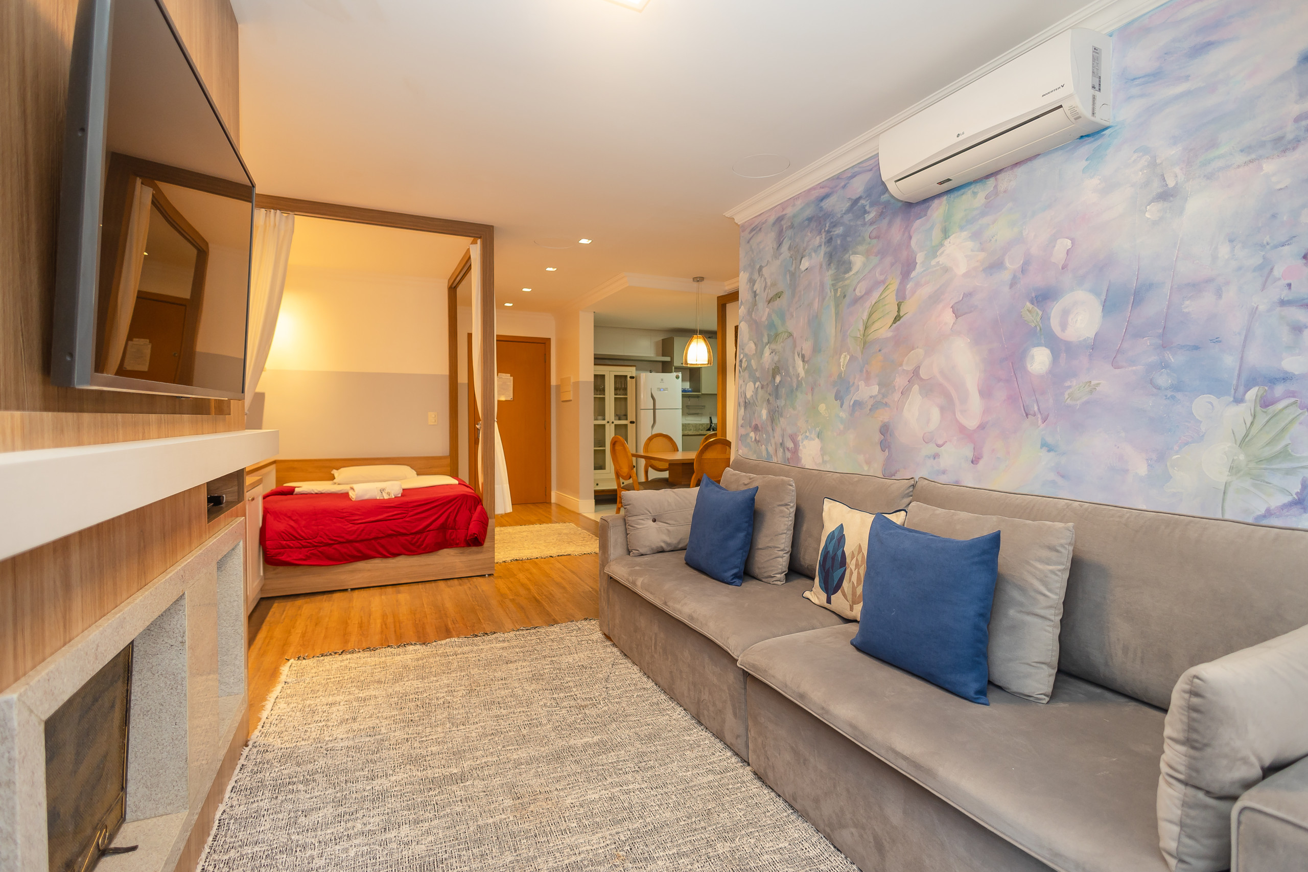 Novo e super aconchegante! Desfrute de um amplo apartamento de 1 dormitório no coração de Gramado, a poucos passos das principais atrações da cidade. Localização perfeita para explorar a cidade a pé, sem precisar de carro! O imóvel é totalmente equipado, com cama queen, sofá cama de casal, Smart TVs, ar-condicionado quente/frio, lava e seca e enxoval de luxo. Conta também com vaga de garagem exclusiva! Reserve e viva o melhor de Gramado!