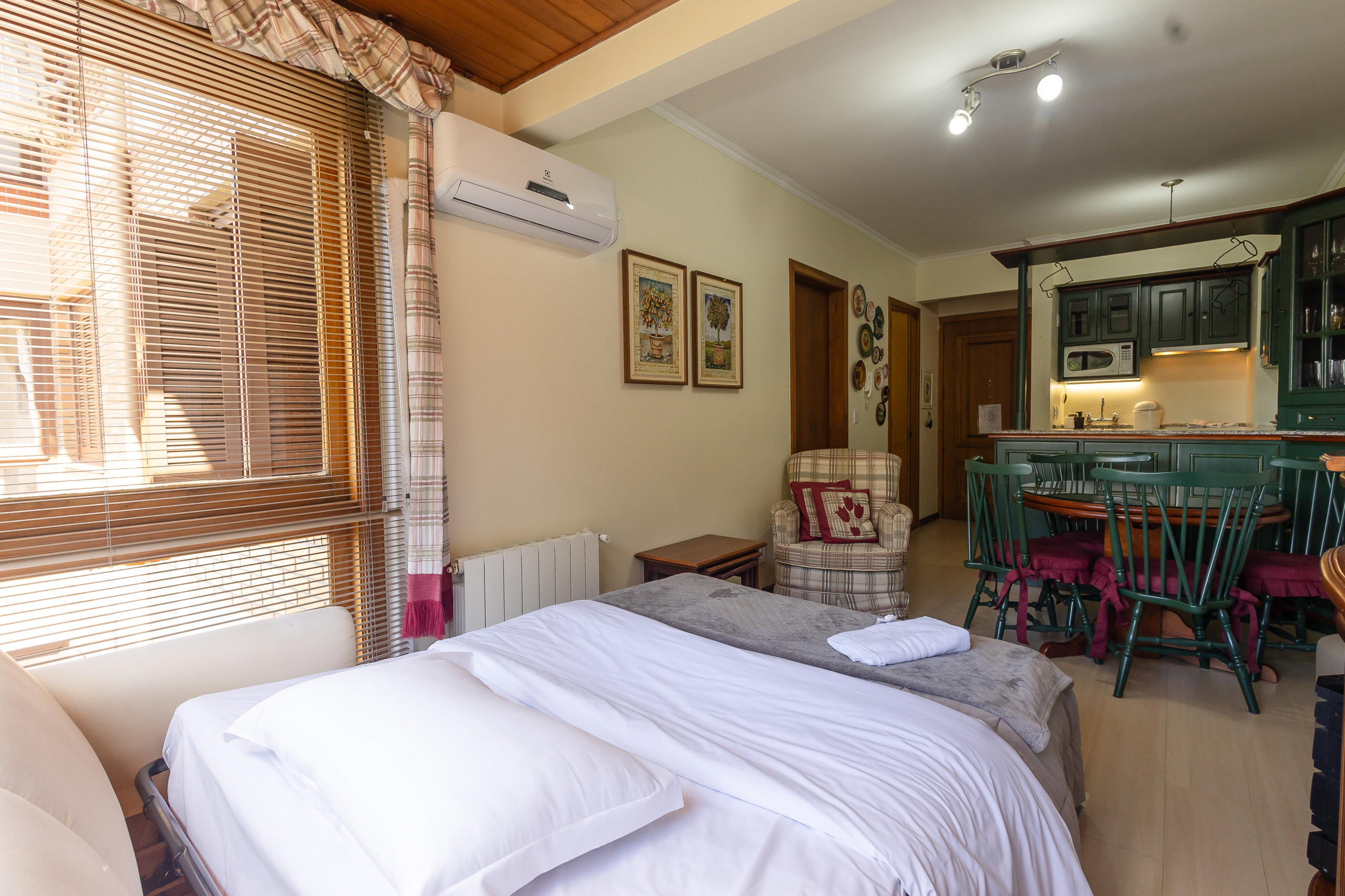 Novo e super aconchegante! Desfrute de um amplo apartamento de 1 dormitório no coração de Gramado, a poucos passos das principais atrações da cidade. Localização perfeita para explorar a cidade a pé, sem precisar de carro! O imóvel é totalmente equipado, com cama queen, sofá cama de casal, Smart TVs, ar-condicionado quente/frio, lava e seca e enxoval de luxo. Conta também com vaga de garagem exclusiva! Reserve e viva o melhor de Gramado!