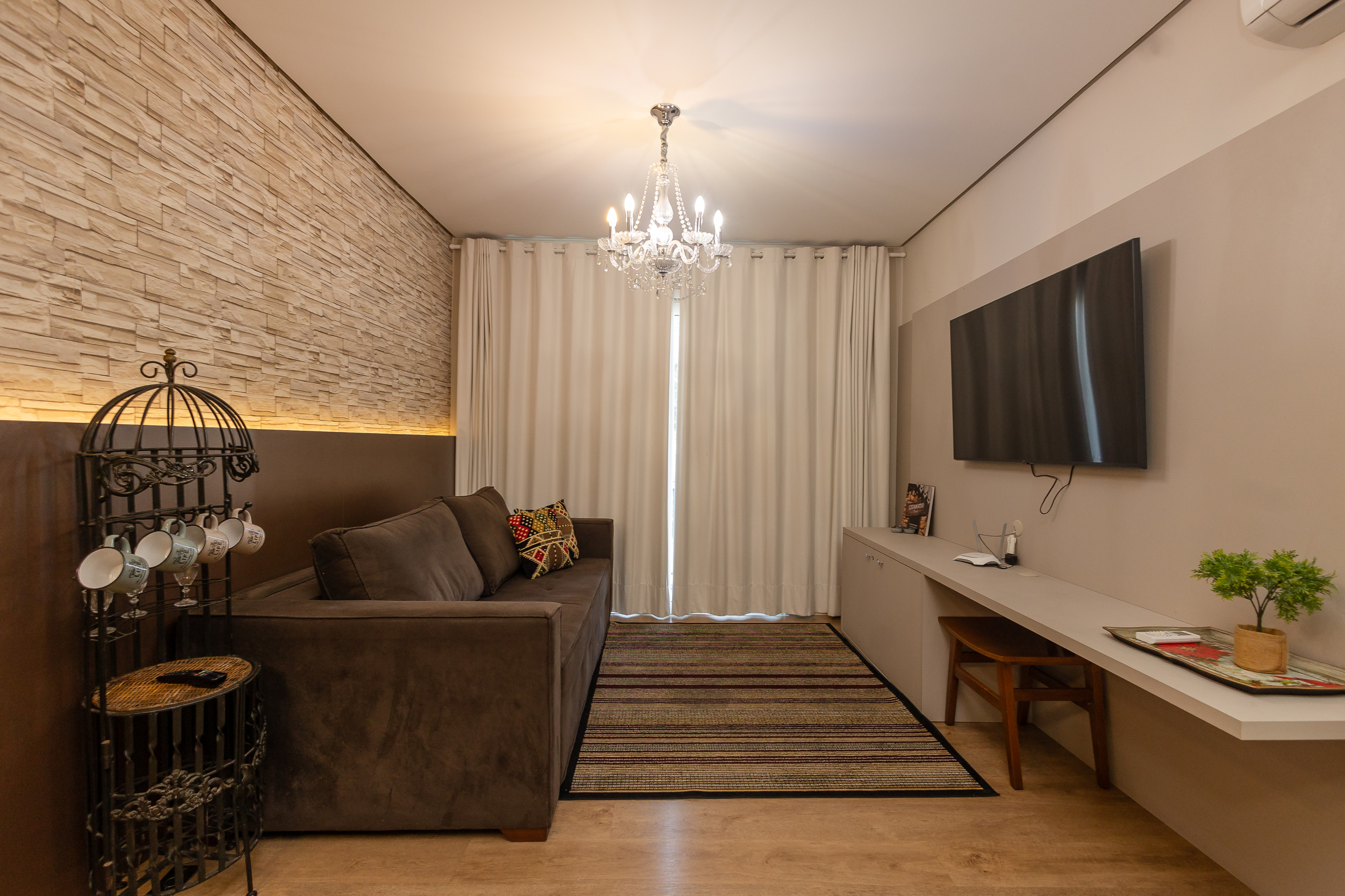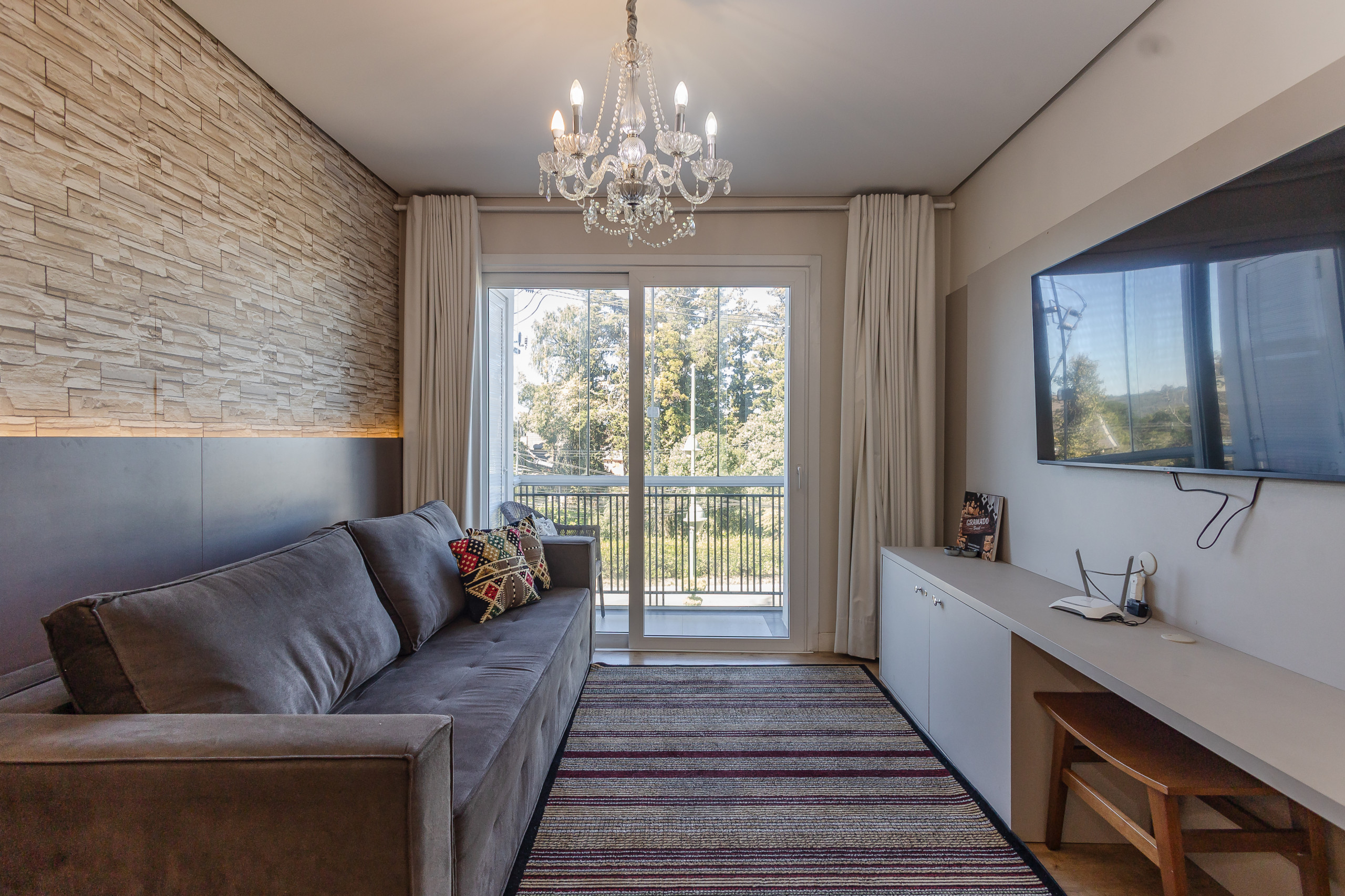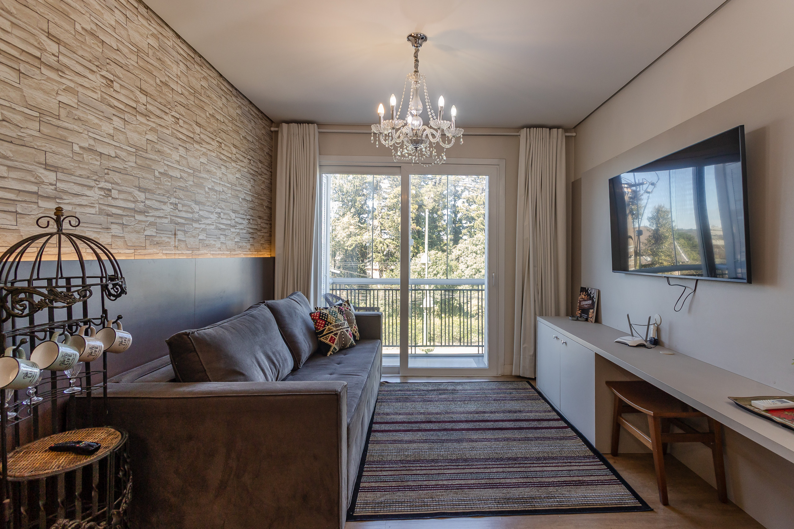 Apartamento moderno com 1 quarto, no centro de Gramado, a 400m da Rua Coberta! Possui amplo living com dois ambientes (estar e jantar), cozinha equipada, churrasqueira, 2 smart TV, internet de alta velocidade, casa de banho social completa, varanda, garagem, todos os ambientes climatizados por split Q/F e enxoval de cama, mesa e banho completo. Aproveite tudo o que a cidade oferece sem precisar usar carro! Desfrute dos restaurantes, bares, lojas e passeios no centro em pequenas caminhadas.