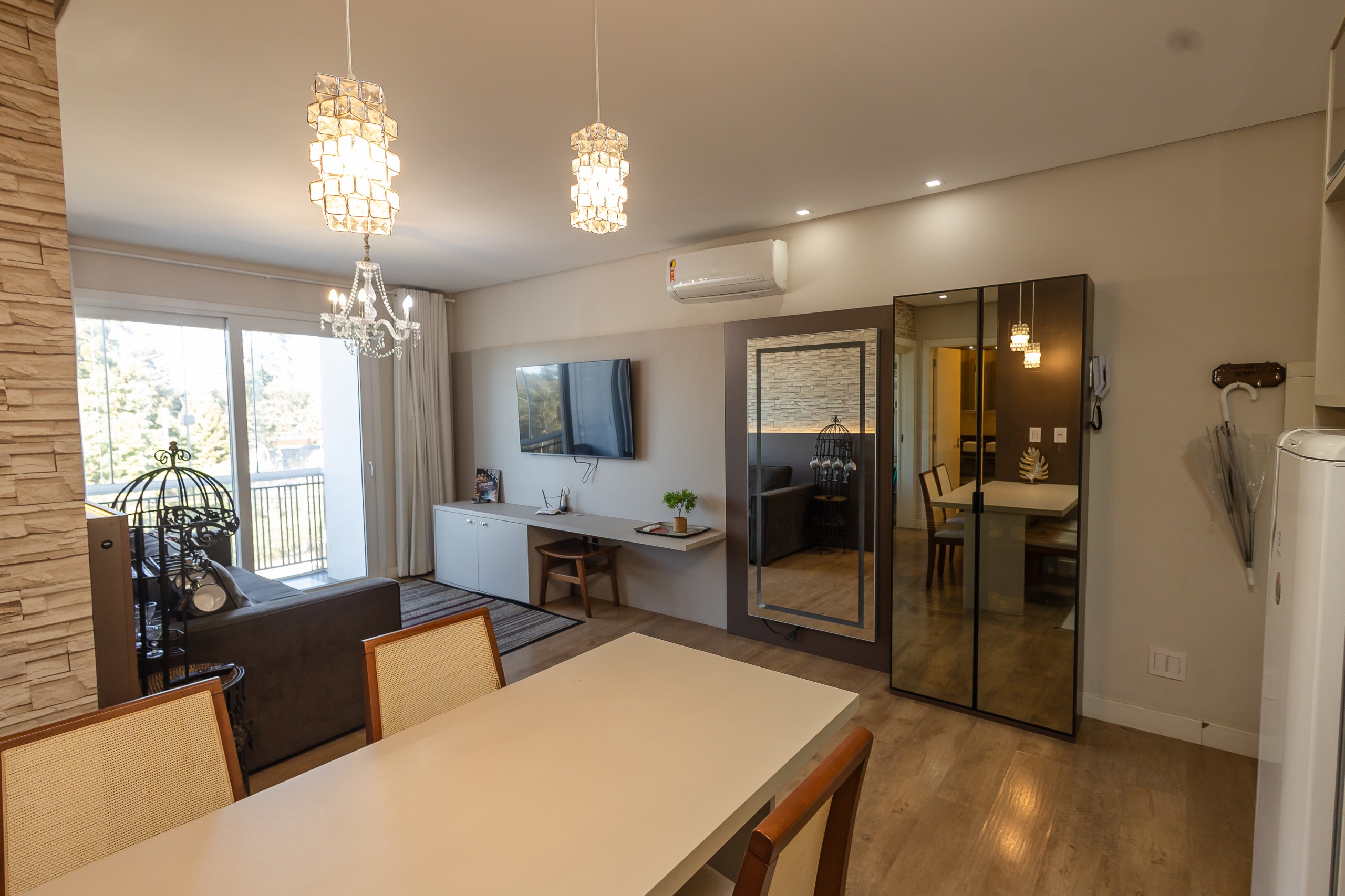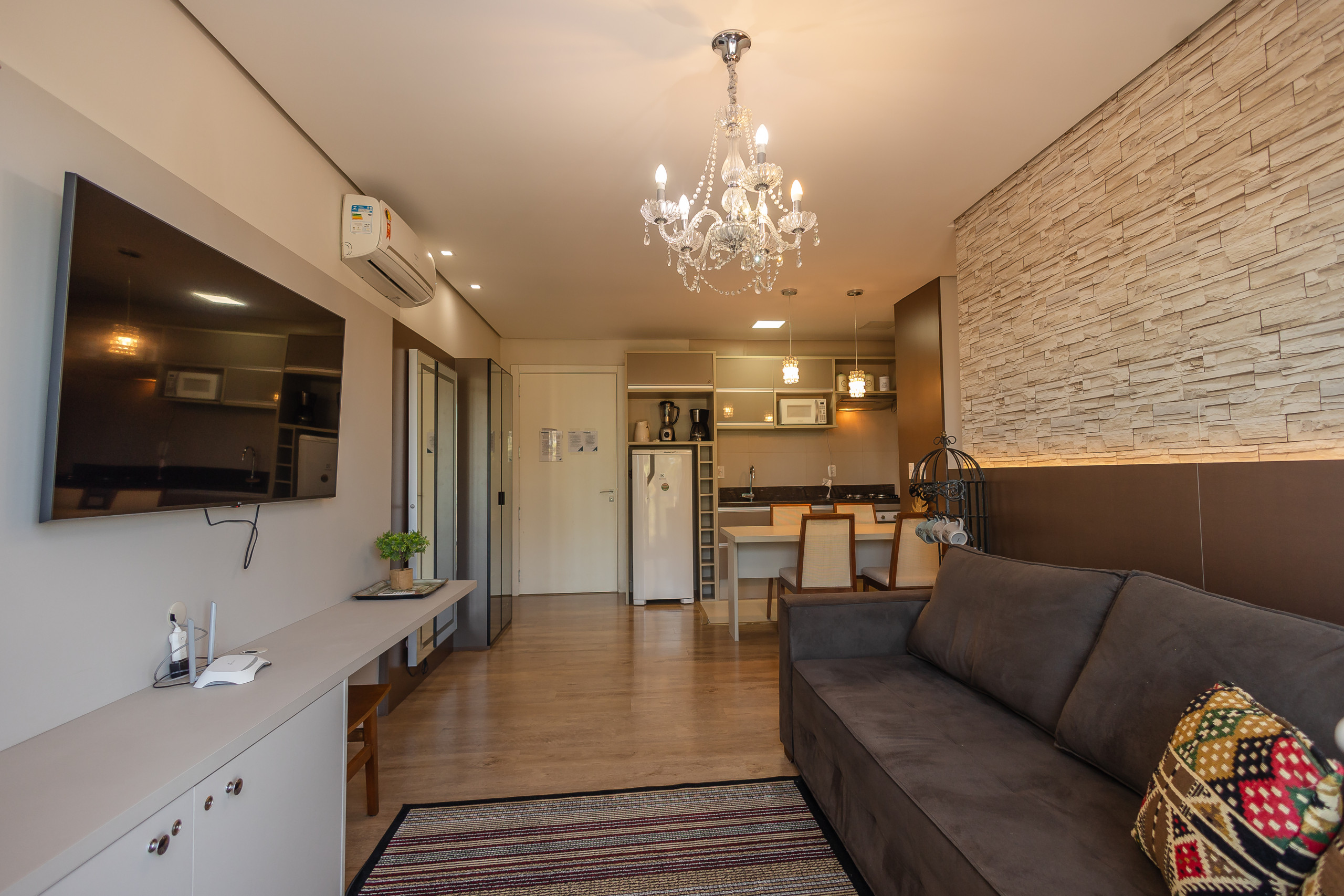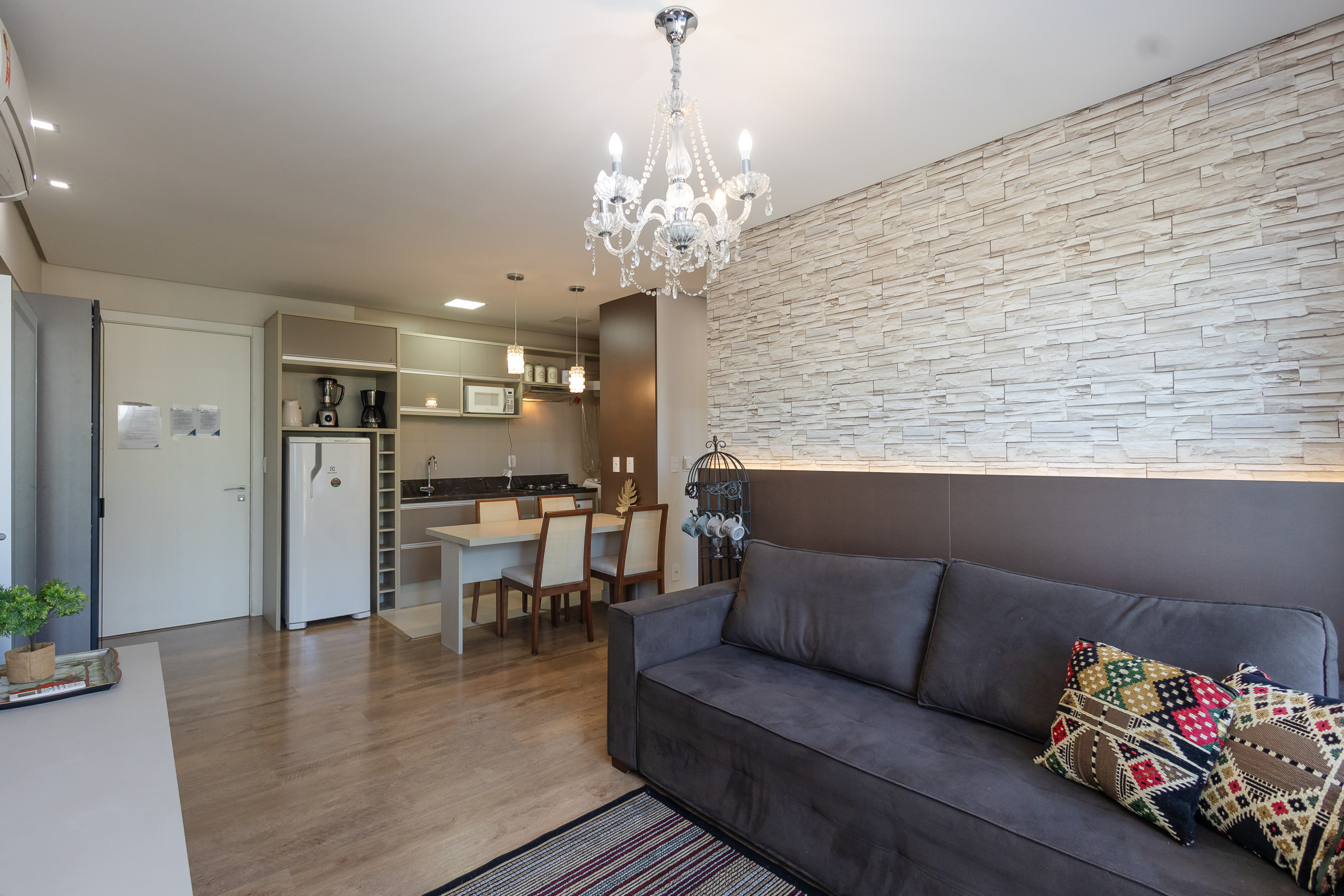 Apartamento moderno com 1 quarto, no centro de Gramado, a 400m da Rua Coberta! Possui amplo living com dois ambientes (estar e jantar), cozinha equipada, churrasqueira, 2 smart TV, internet de alta velocidade, casa de banho social completa, varanda, garagem, todos os ambientes climatizados por split Q/F e enxoval de cama, mesa e banho completo. Aproveite tudo o que a cidade oferece sem precisar usar carro! Desfrute dos restaurantes, bares, lojas e passeios no centro em pequenas caminhadas.