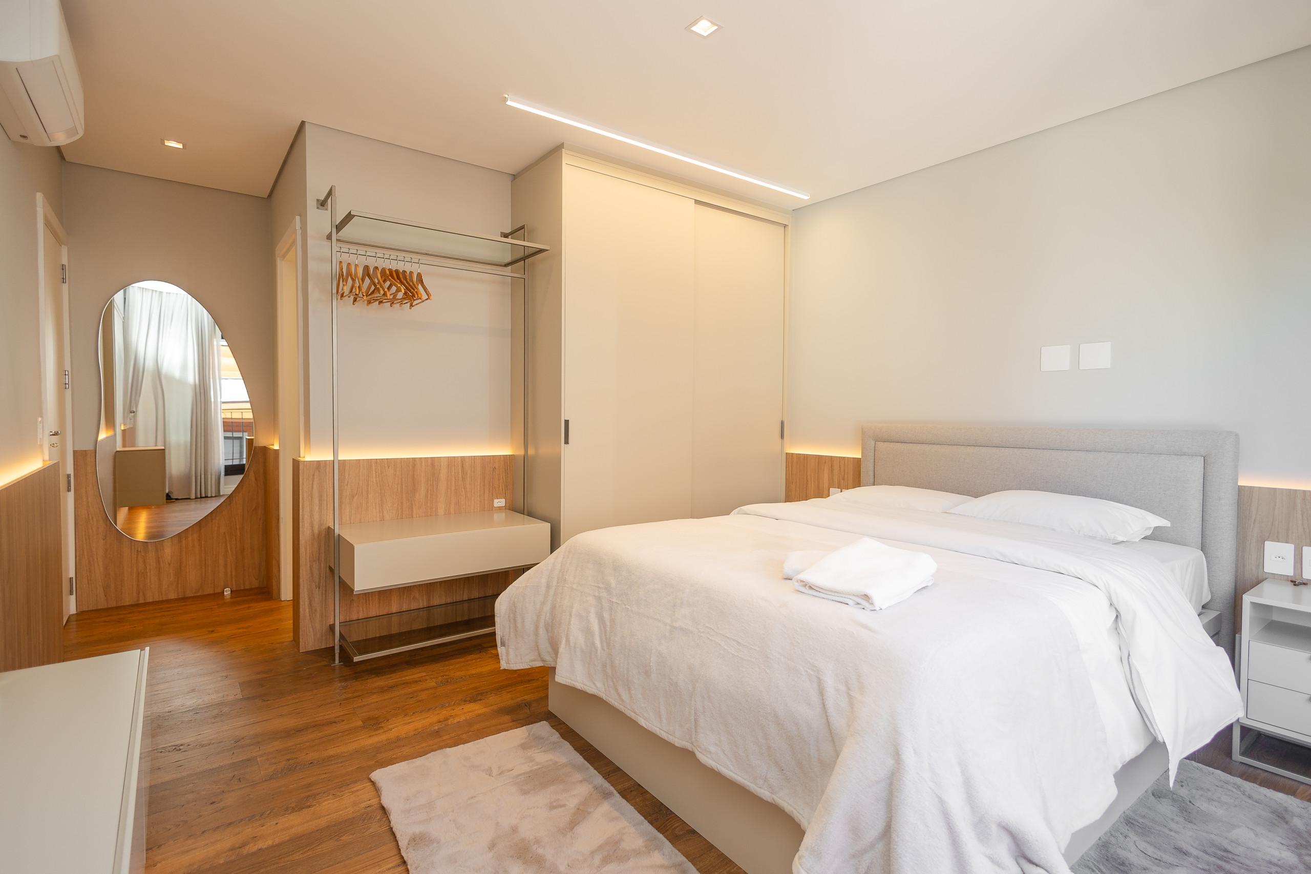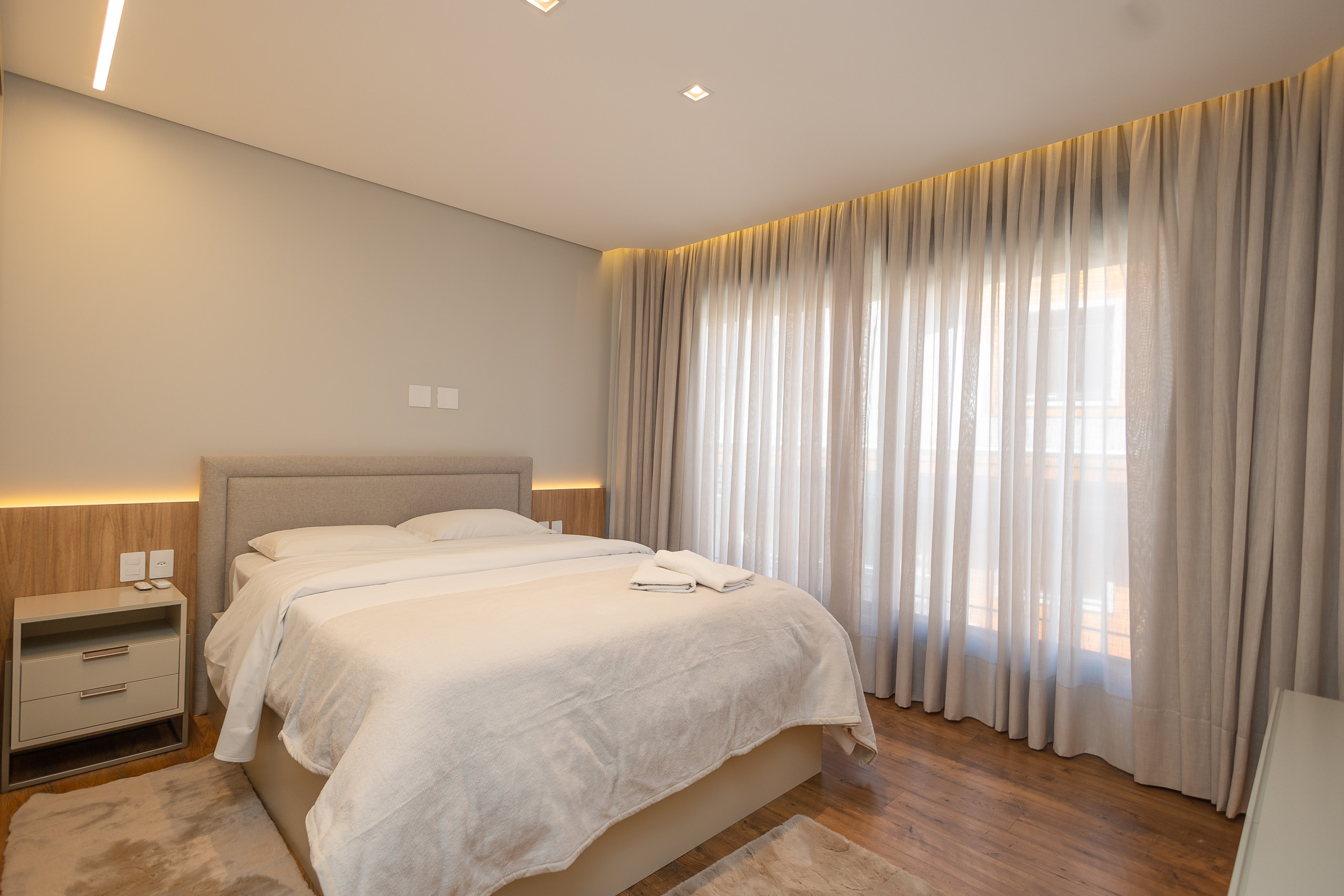 Apartamento moderno com 2 quartos, sendo uma suíte, amplo living de estar e jantar integrados à cozinha (completamente equipada) e área gourmet churrasqueira. Ainda conta com área de serviço com lavadora de roupas, banheiro social completo, 1 vaga de garagem e enxoval completo de cama e banho para todos durante a estadia. Localizado em uma das principais avenidas da cidade, está a aproximadamente 1km da rua coberta, e você encontrará o melhor da vida aqui sem precisar tirar o carro da garagem.
