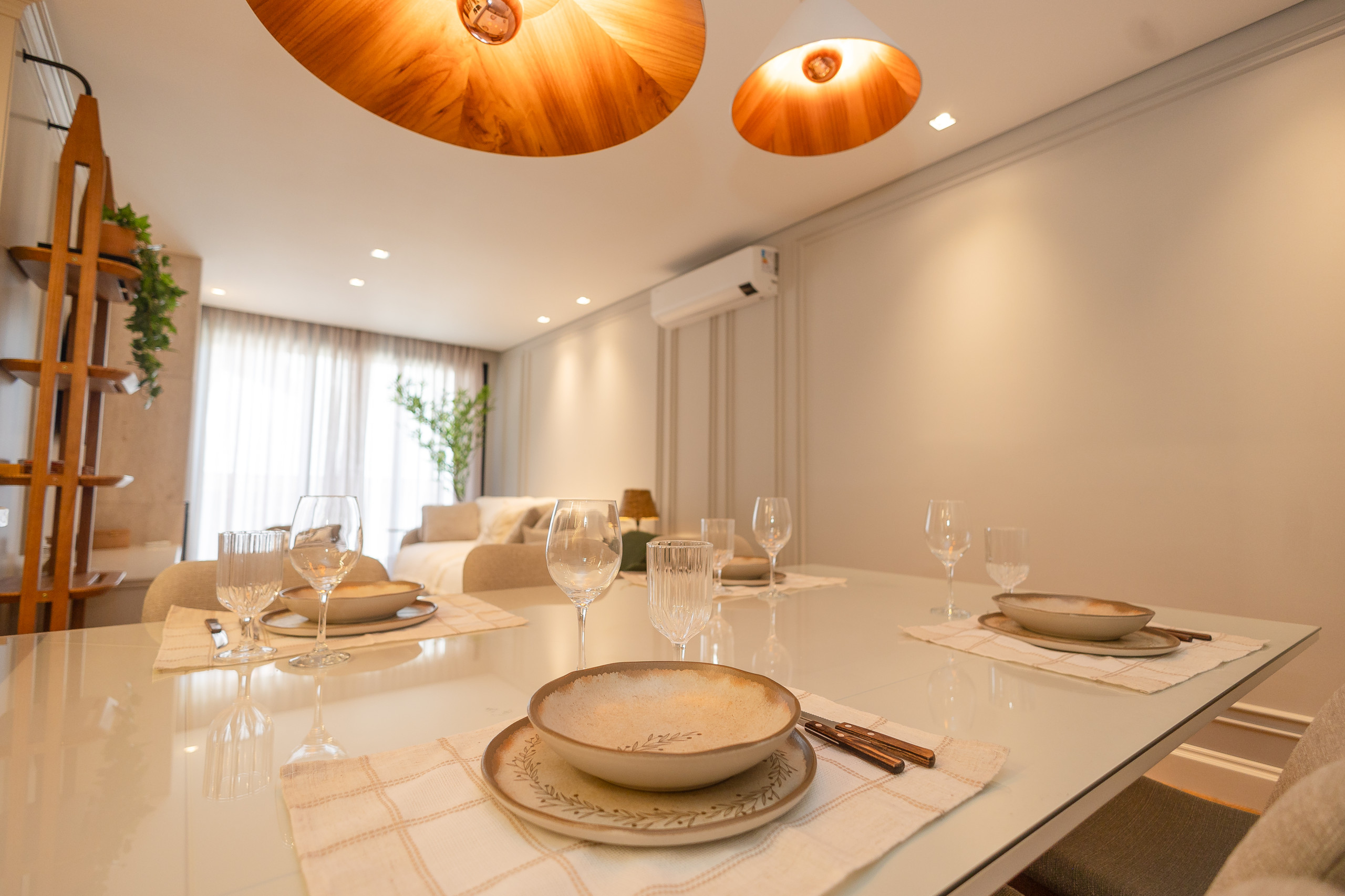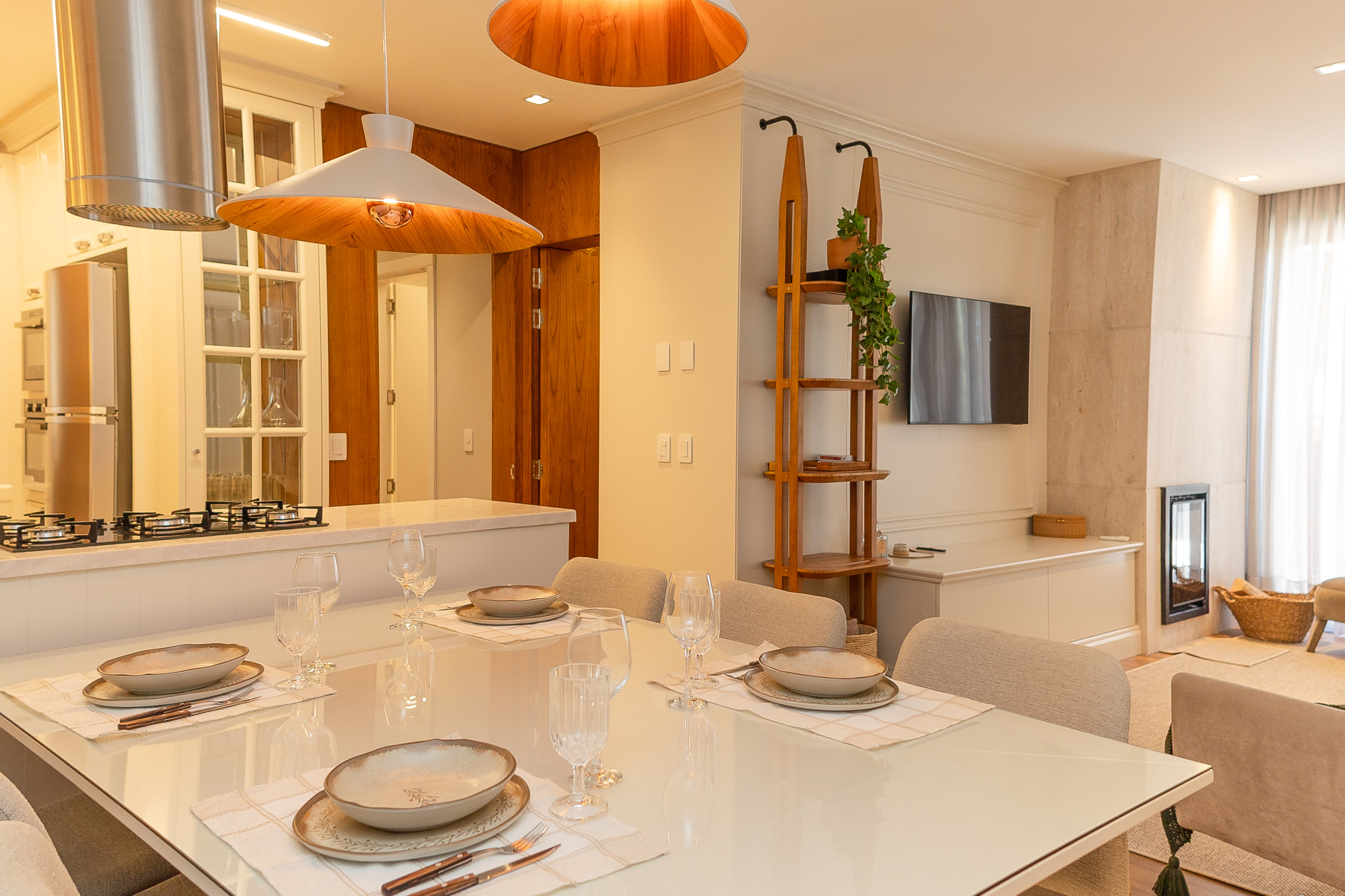 O living conta com três ambientes (cozinha, estar e jantar) e lavabo e vai proporcionar um espaço para que aproveitem os momentos de descontração em grupo, com muito bom gosto! Além de calefator também conta com split Q/F, tornando especiais os dias de verão e inverno!