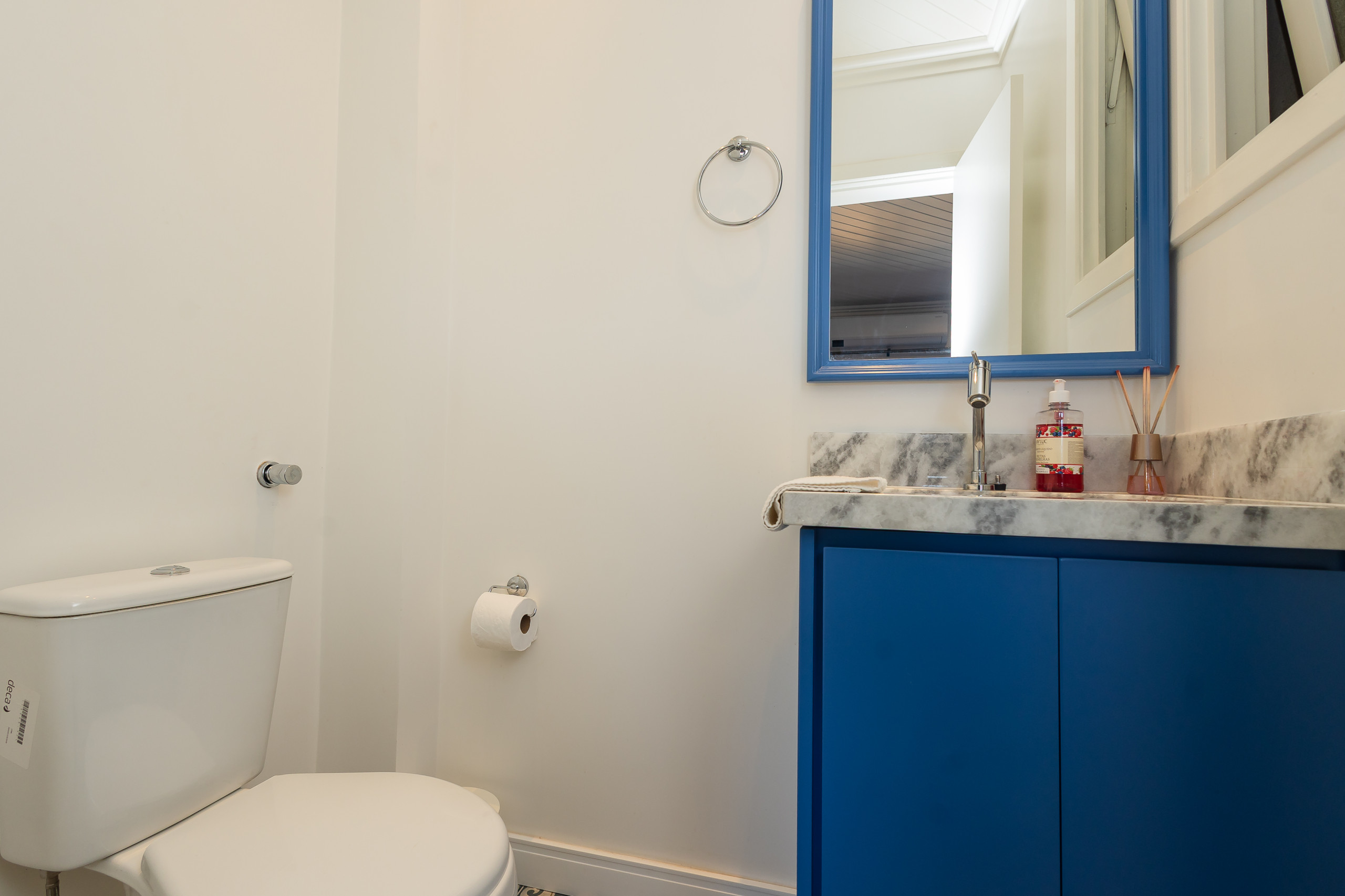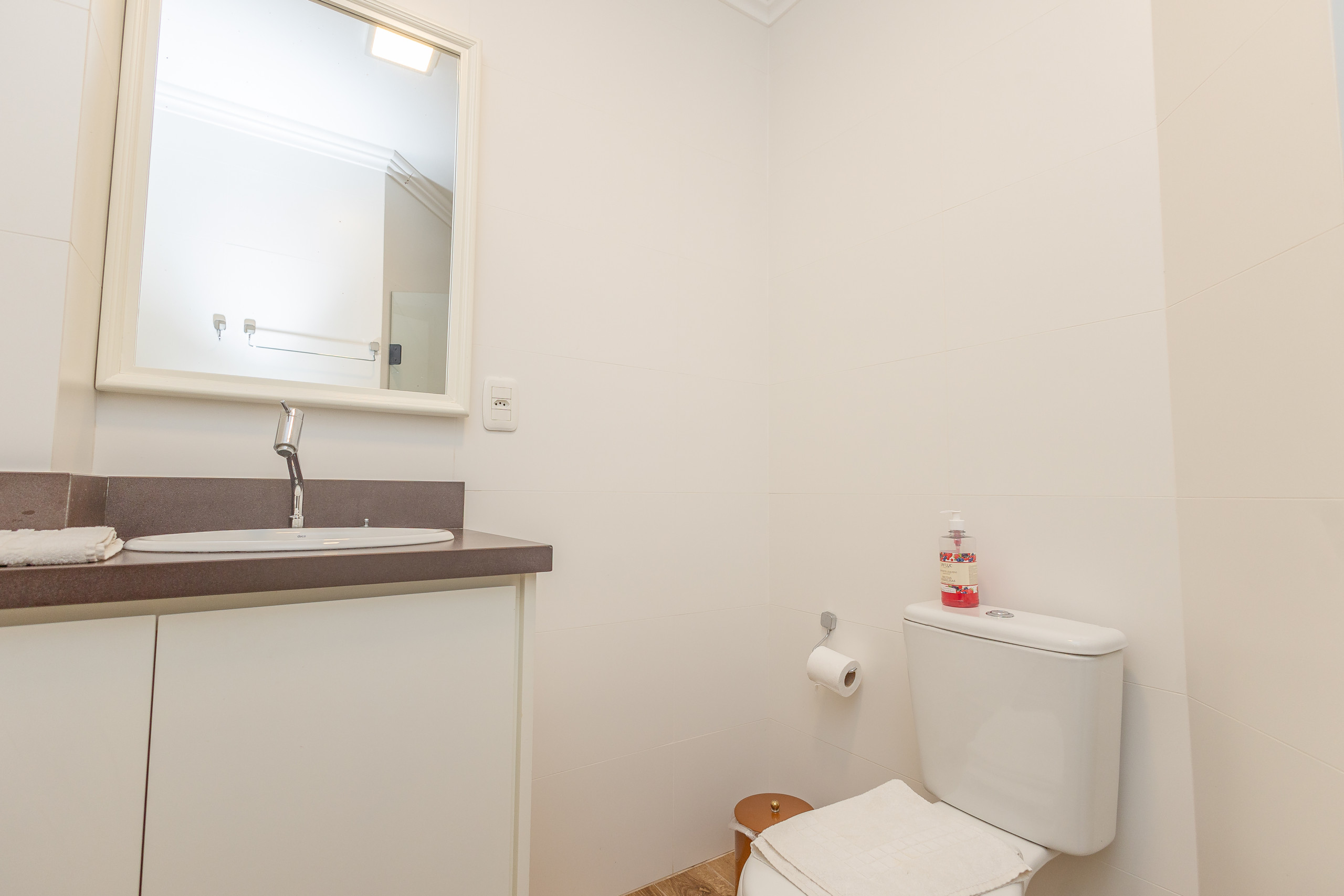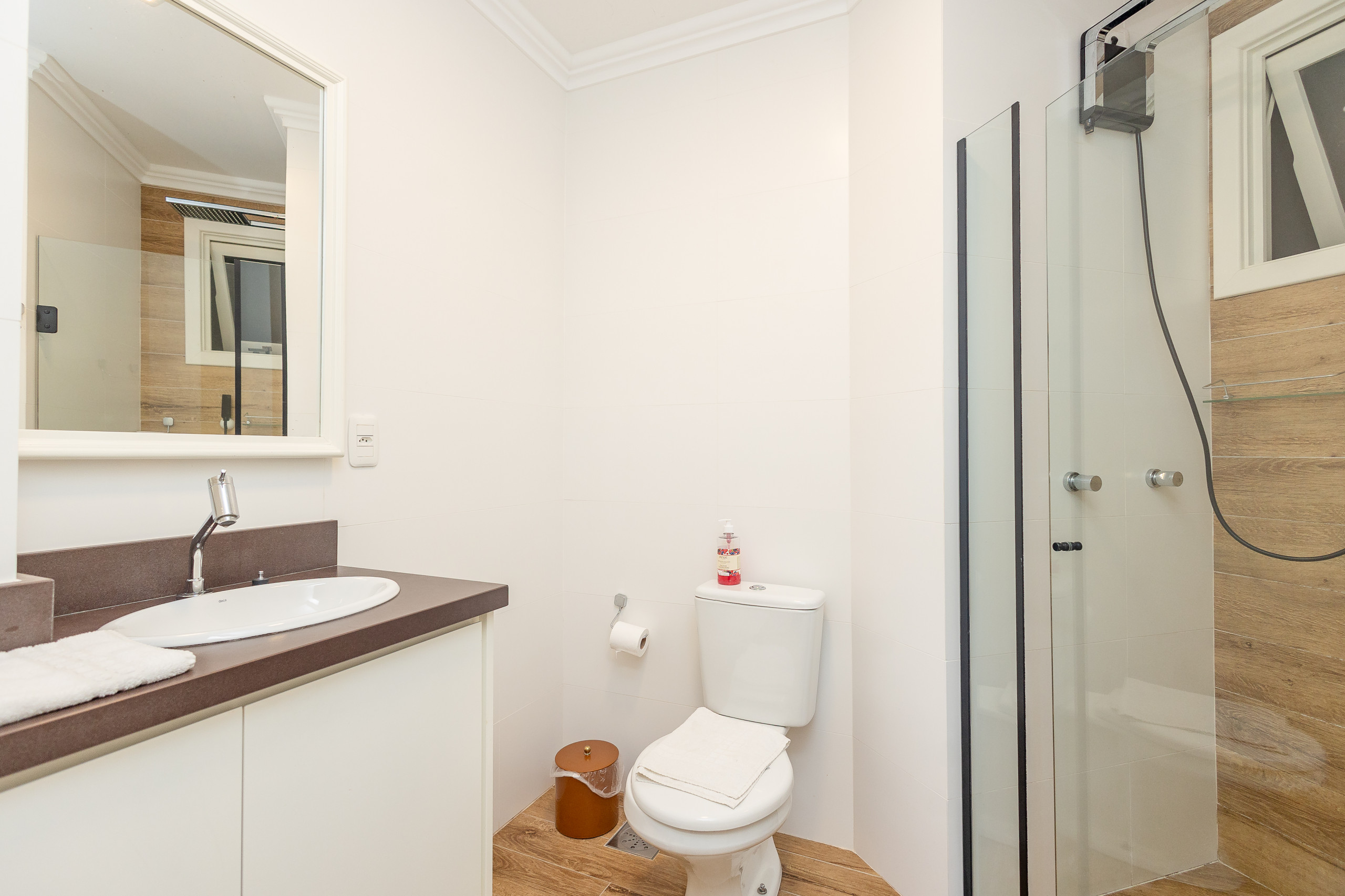 O imóvel conta com três banheiros - dois com chuveiro e um lavabo - facilitando a rotina de grupos maiores. Comodidades como Wi-Fi, ferro de passar e estacionamento privativo para dois carros em garagem completam a estrutura.