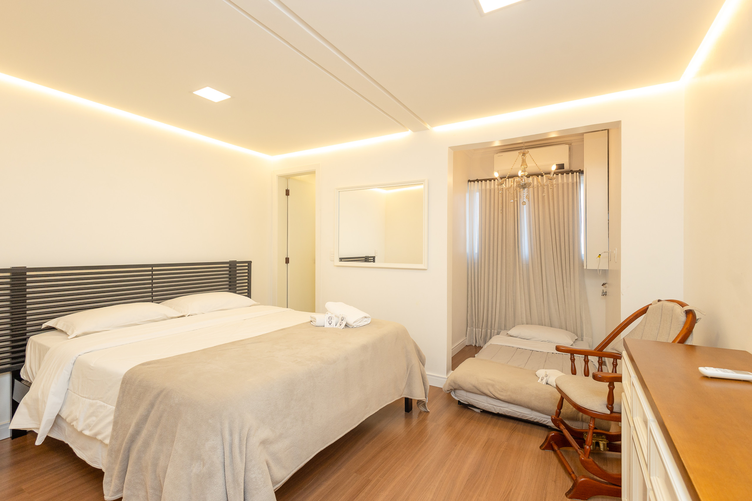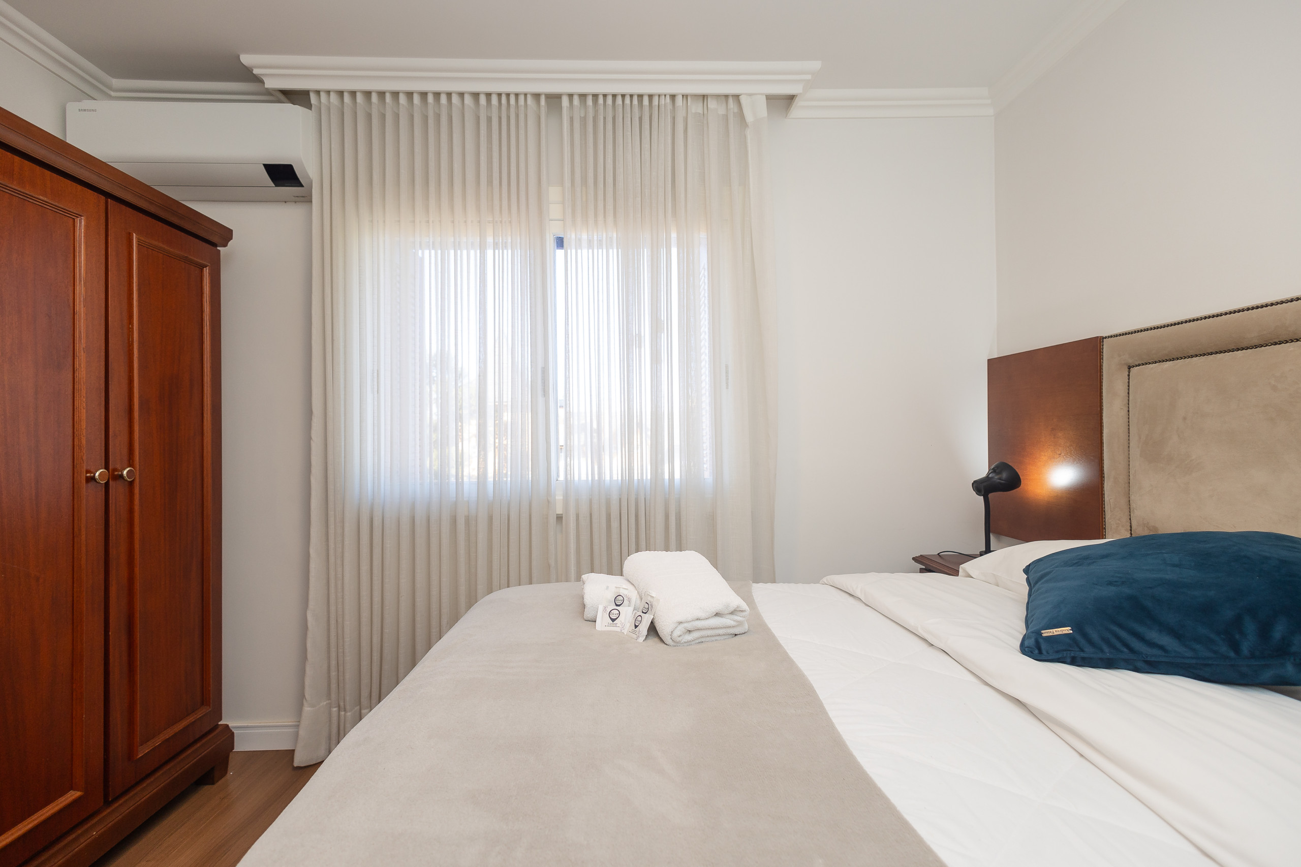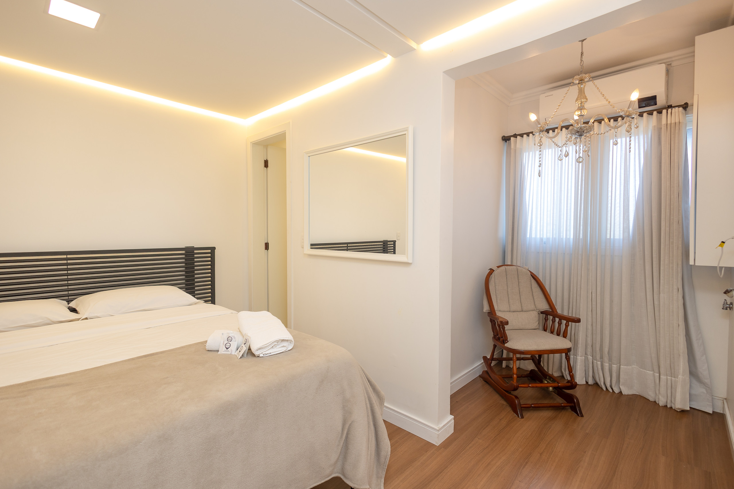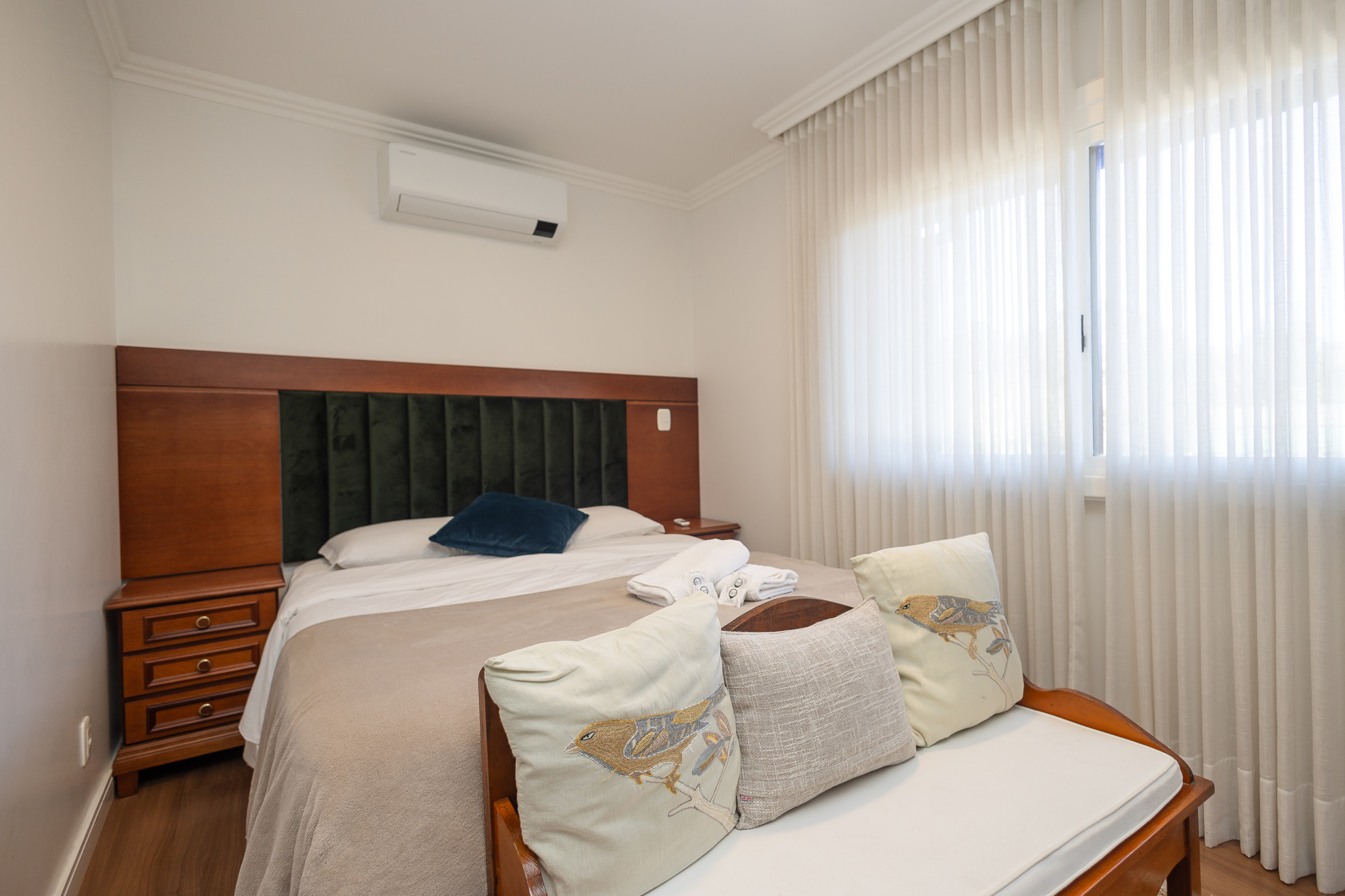 São 4 quartos e 4 banheiros (sendo 3 suítes, um dorm. e 1 banho social completo) climatizados com split Q/F e smart TV. Também conta com living climatizado com 4 ambientes (estar, jantar, cozinha americana completa e varanda fechada com vista para praça) com lareira e churrasqueira. Você ainda terá a sua disposição lava e seca, lava louças, internet de alta velocidade e enxoval alto padrão completo para sua estadia.