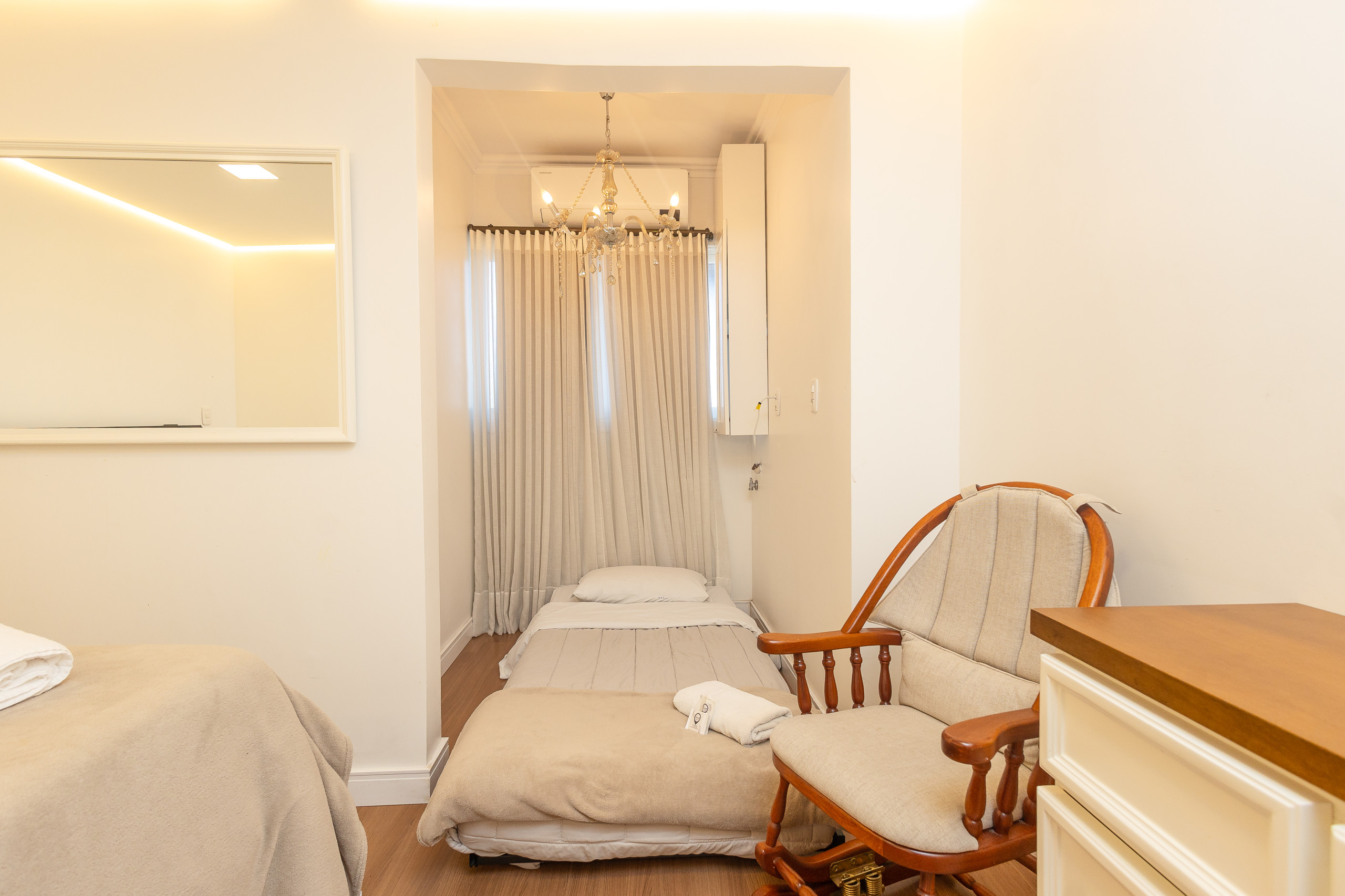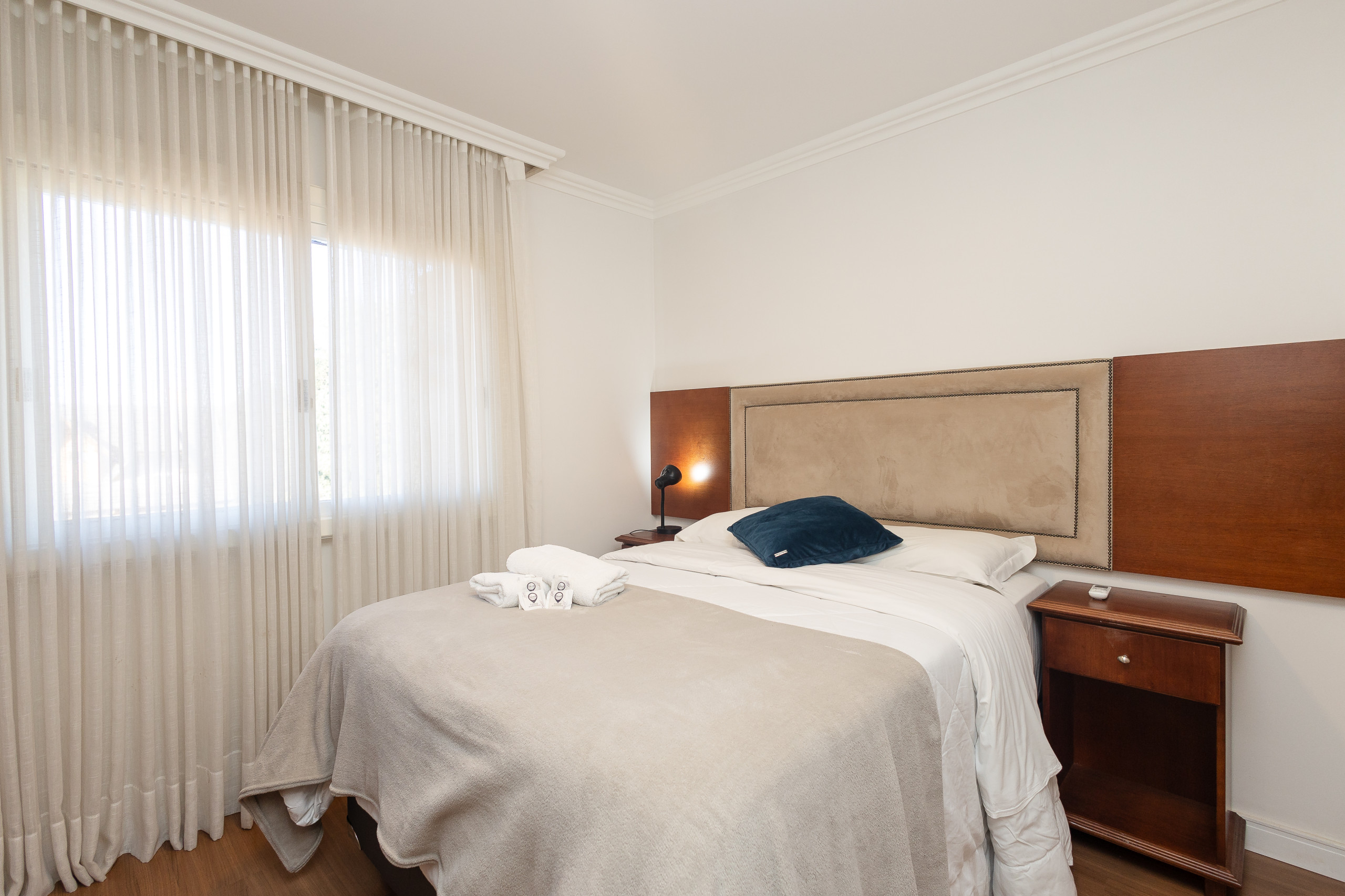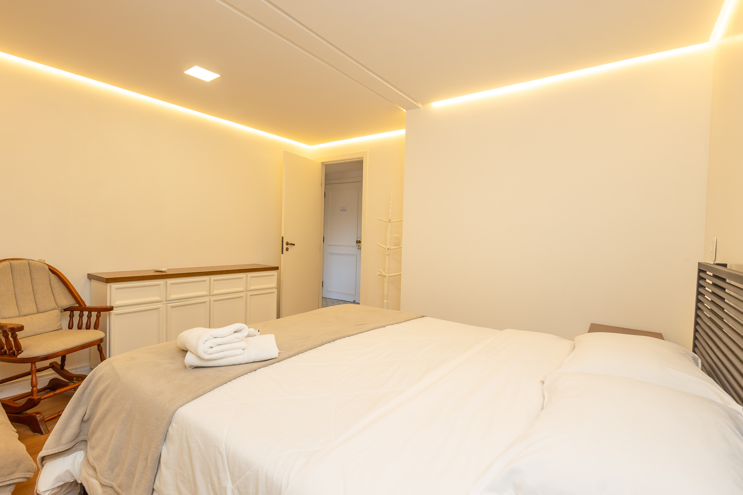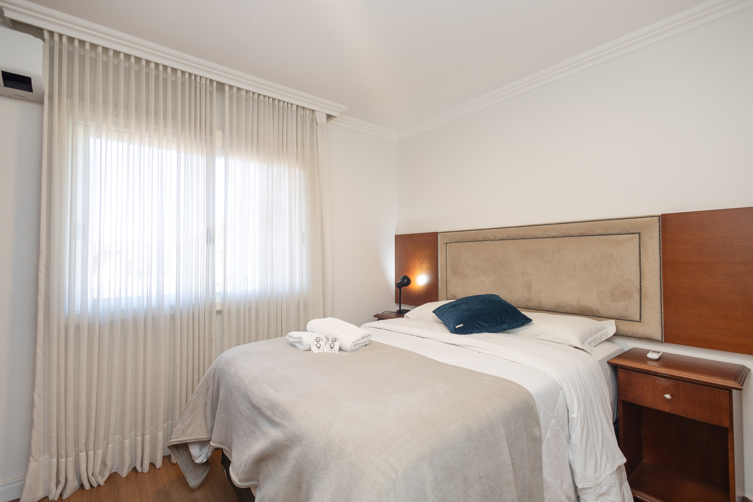São 4 quartos e 4 banheiros (sendo 3 suítes, um dorm. e 1 banho social completo) climatizados com split Q/F e smart TV. Também conta com living climatizado com 4 ambientes (estar, jantar, cozinha americana completa e varanda fechada com vista para praça) com lareira e churrasqueira. Você ainda terá a sua disposição lava e seca, lava louças, internet de alta velocidade e enxoval alto padrão completo para sua estadia.