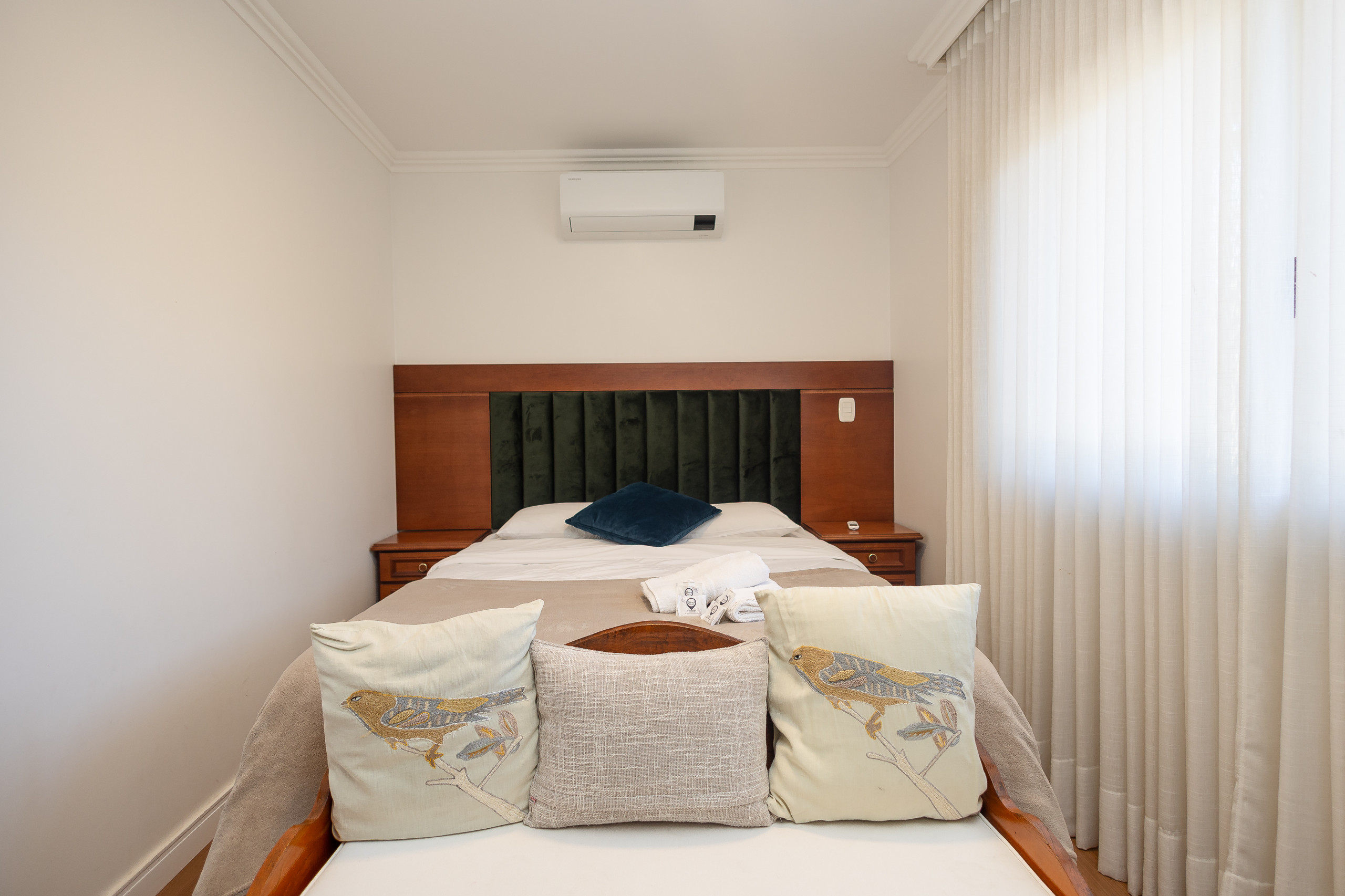 O check-in é gratuito das 15h às 22h e o check-out, das 8h às 11h. Estes horários poderão ser alterados mediante disponibilidade e taxa de recepção (R$70,00).