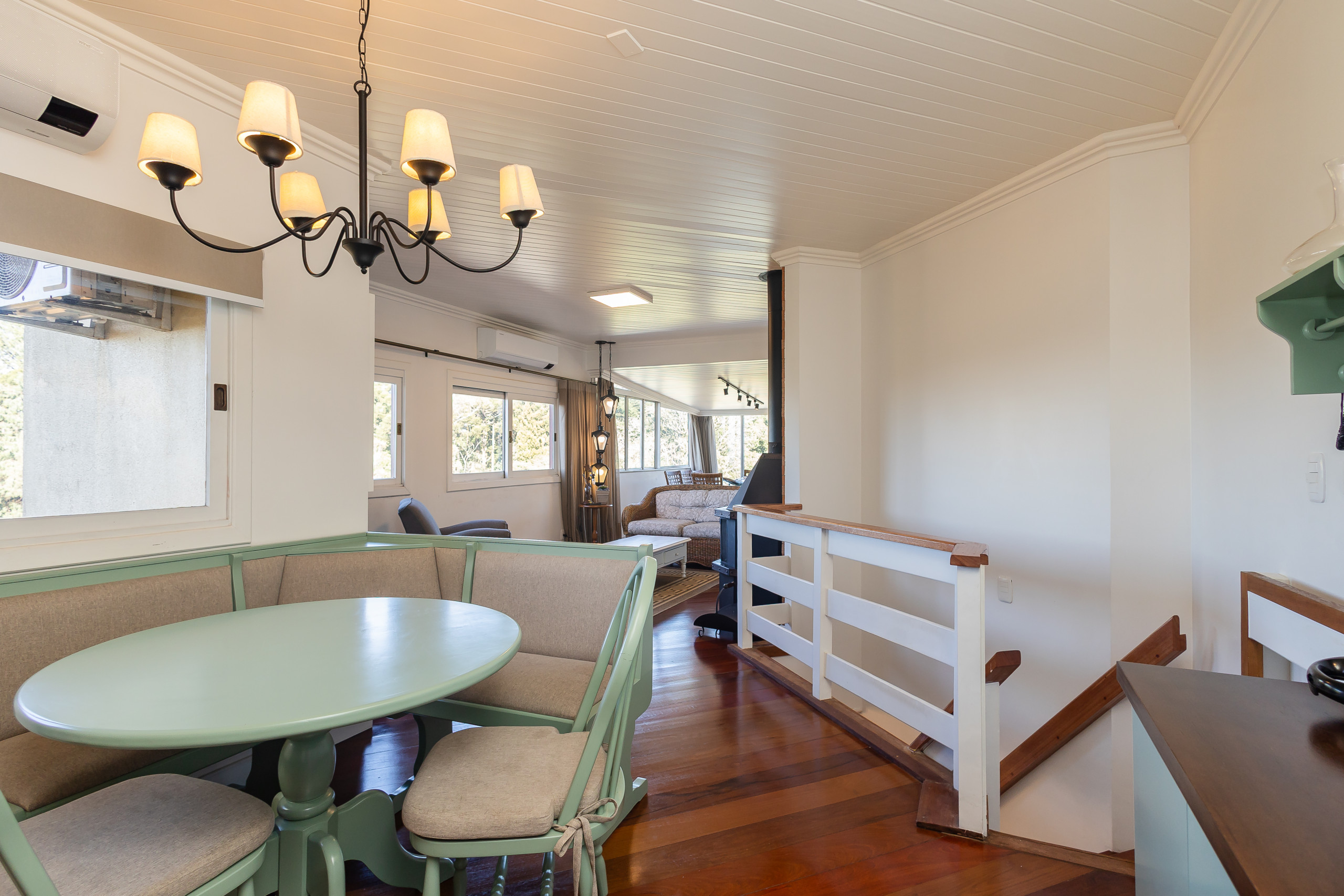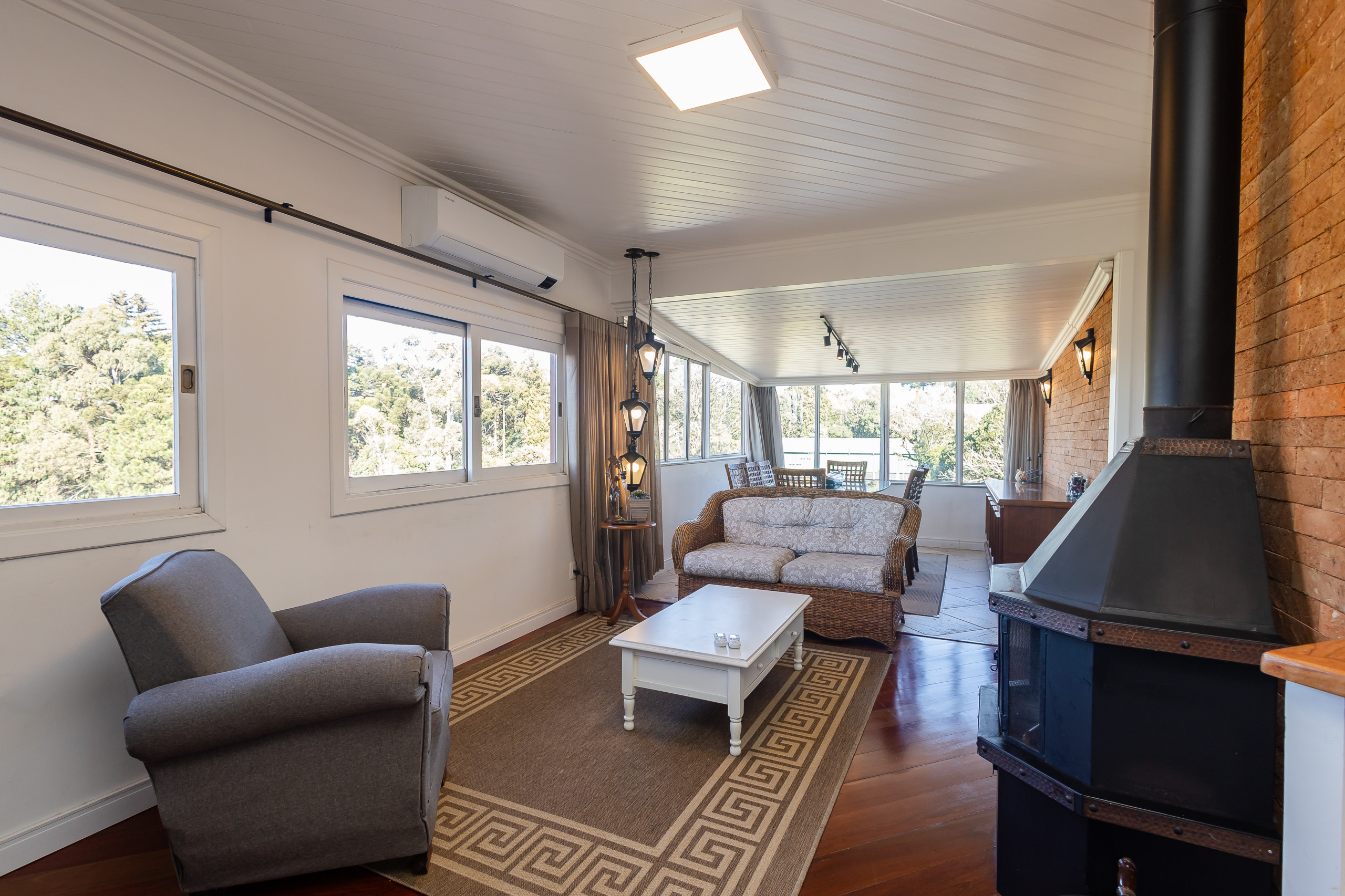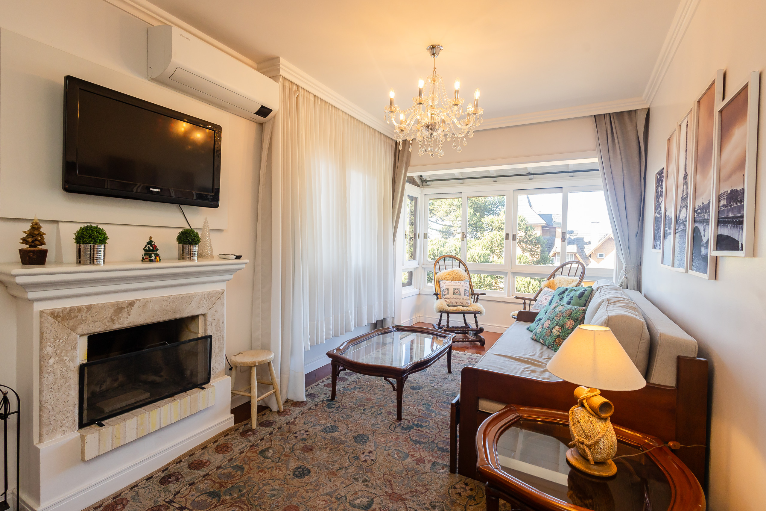 Para os dias mais frios, a lareira proporciona um ambiente aconchegante e romântico, perfeito para momentos de relaxamento. O ar-condicionados Q/F na sala e em todos quartos asseguram o conforto em qualquer estação.