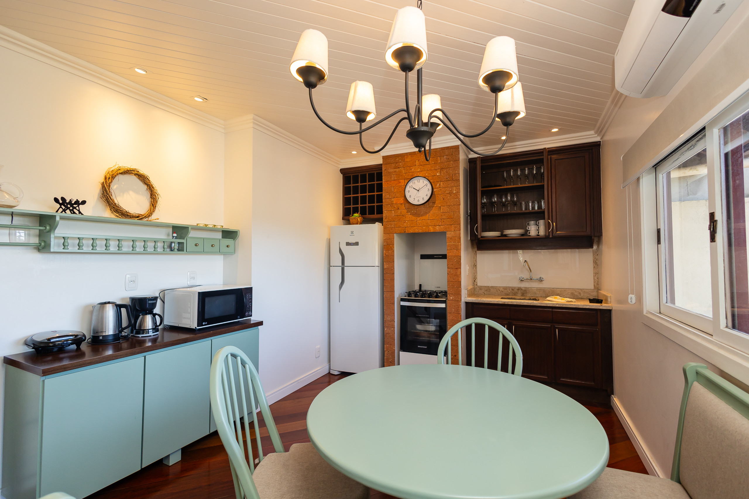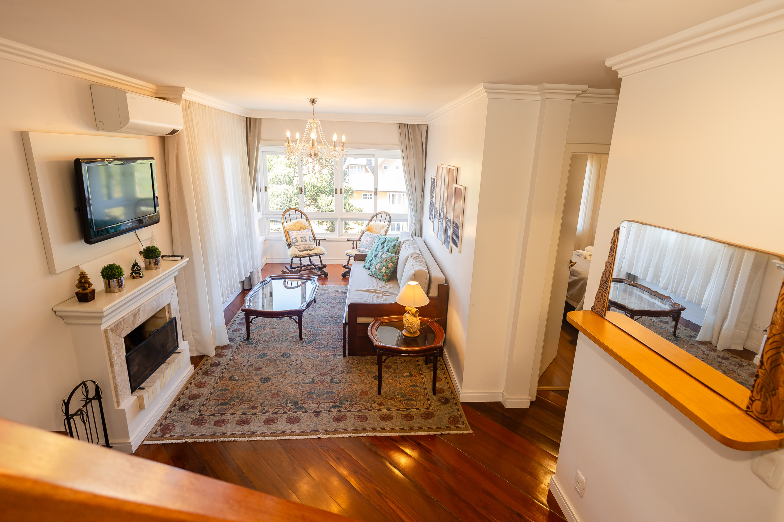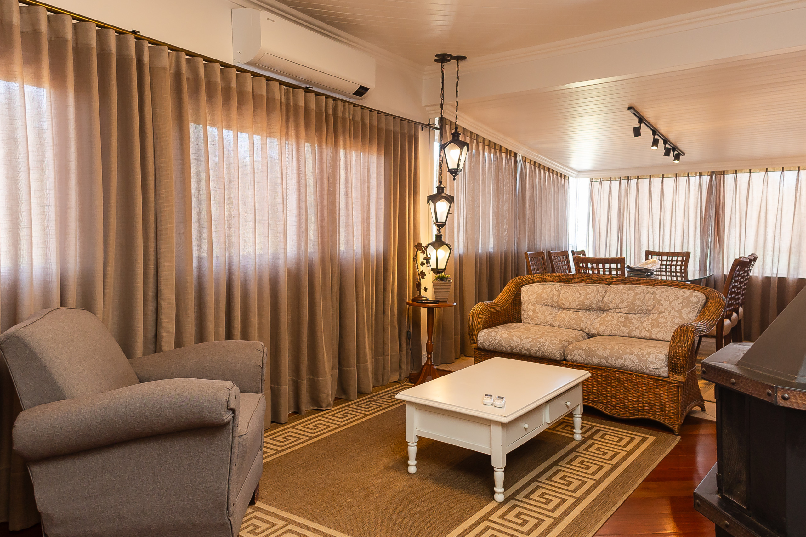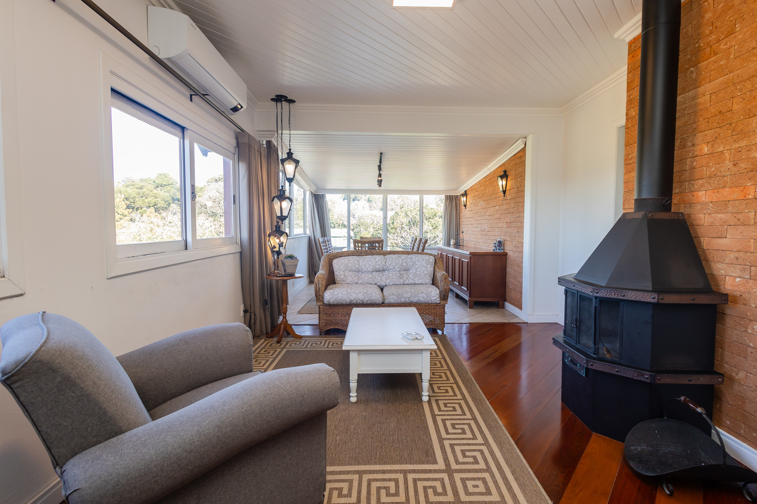Para os dias mais frios, a lareira proporciona um ambiente aconchegante e romântico, perfeito para momentos de relaxamento. O ar-condicionados Q/F na sala e em todos quartos asseguram o conforto em qualquer estação.