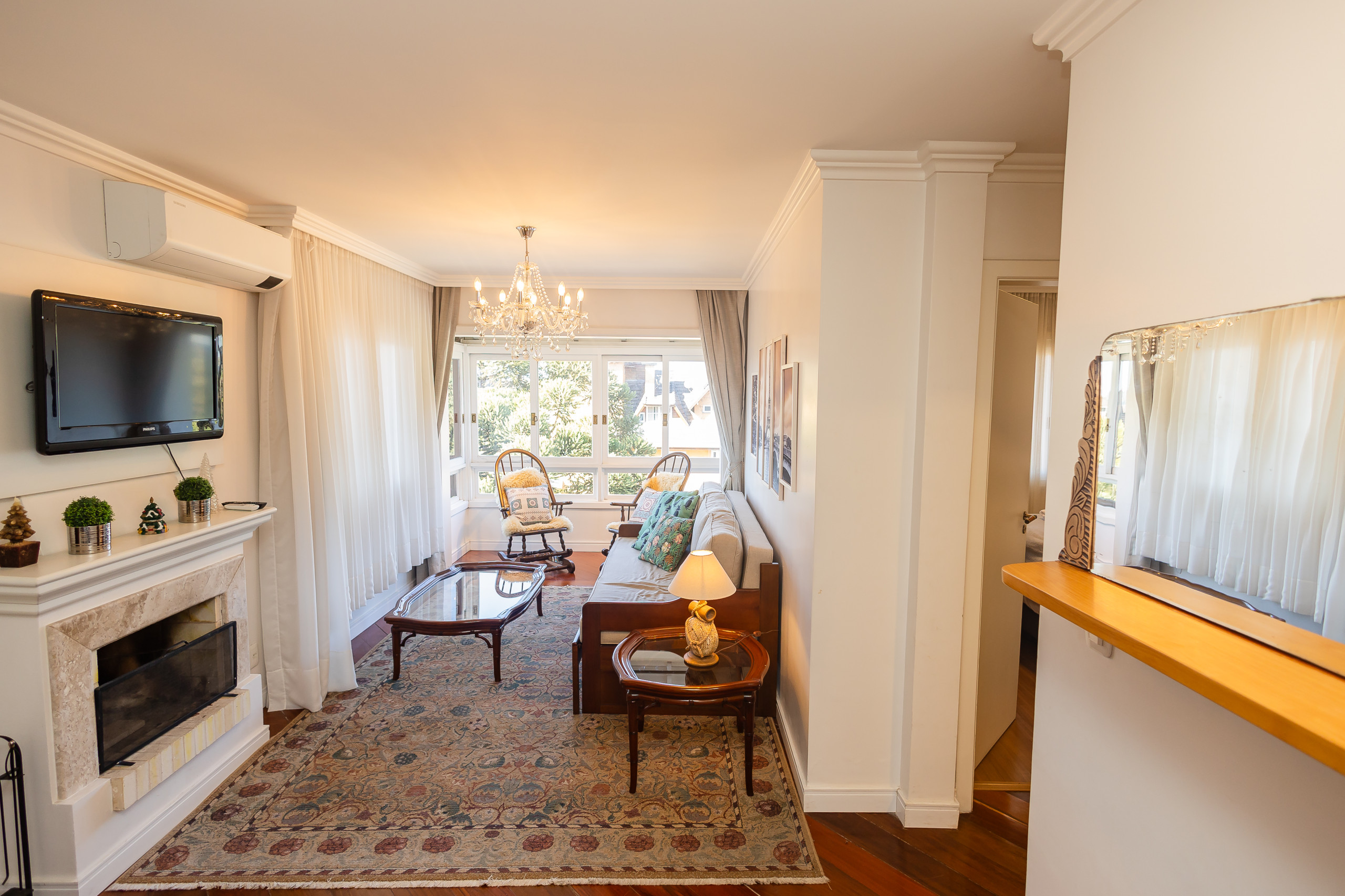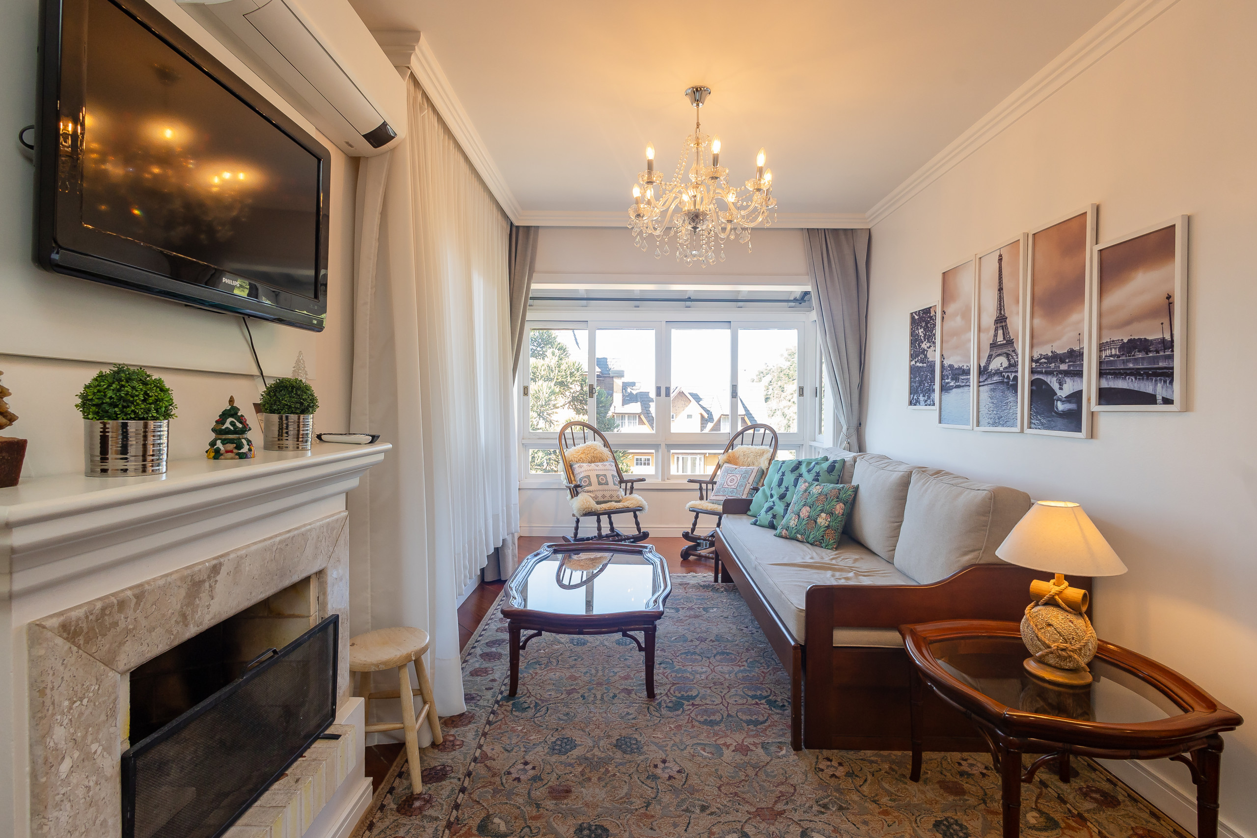 Aconchegante apartamento, localizado no coração de Gramado, com espaçoso living com 2 ambientes, com lareira, smart TV e churrasqueira gourmet, integrado à cozinha completa com lava louças, e área de serviço com lava e seca. Possui 3 suítes completas, todas climatizadas com split Q/F, sendo duas delas com TVs. Sacadas em todos os ambientes. Esqueçam os carros na garagem e aproveitem todas as belezas que a cidade oferece em curtas caminhadas!