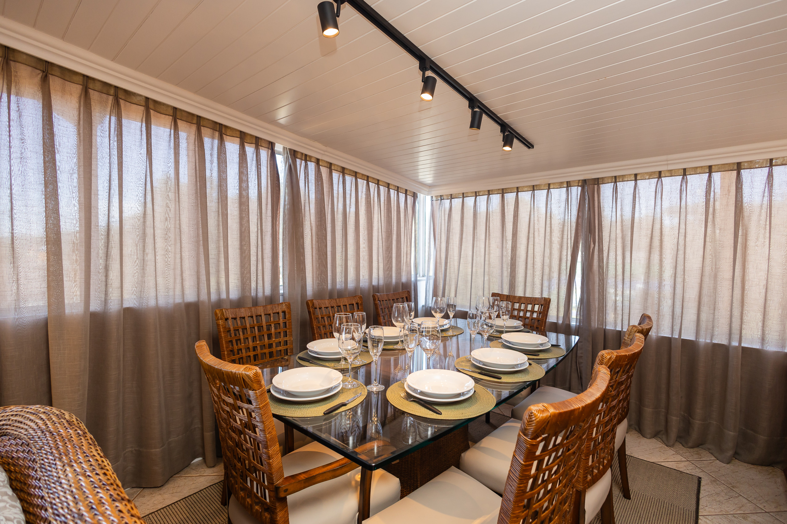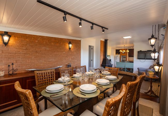 Este espaçoso e iluminado imóvel de 141m² oferece acomodação confortável para até 9 pessoas, com três quartos distribuídos no andar principal. Os dormitórios contam com uma cama casal, duas camas queen size, uma cama individual e dois sofá-camas de solteiro, garantindo flexibilidade e conforto para todos os hóspedes.