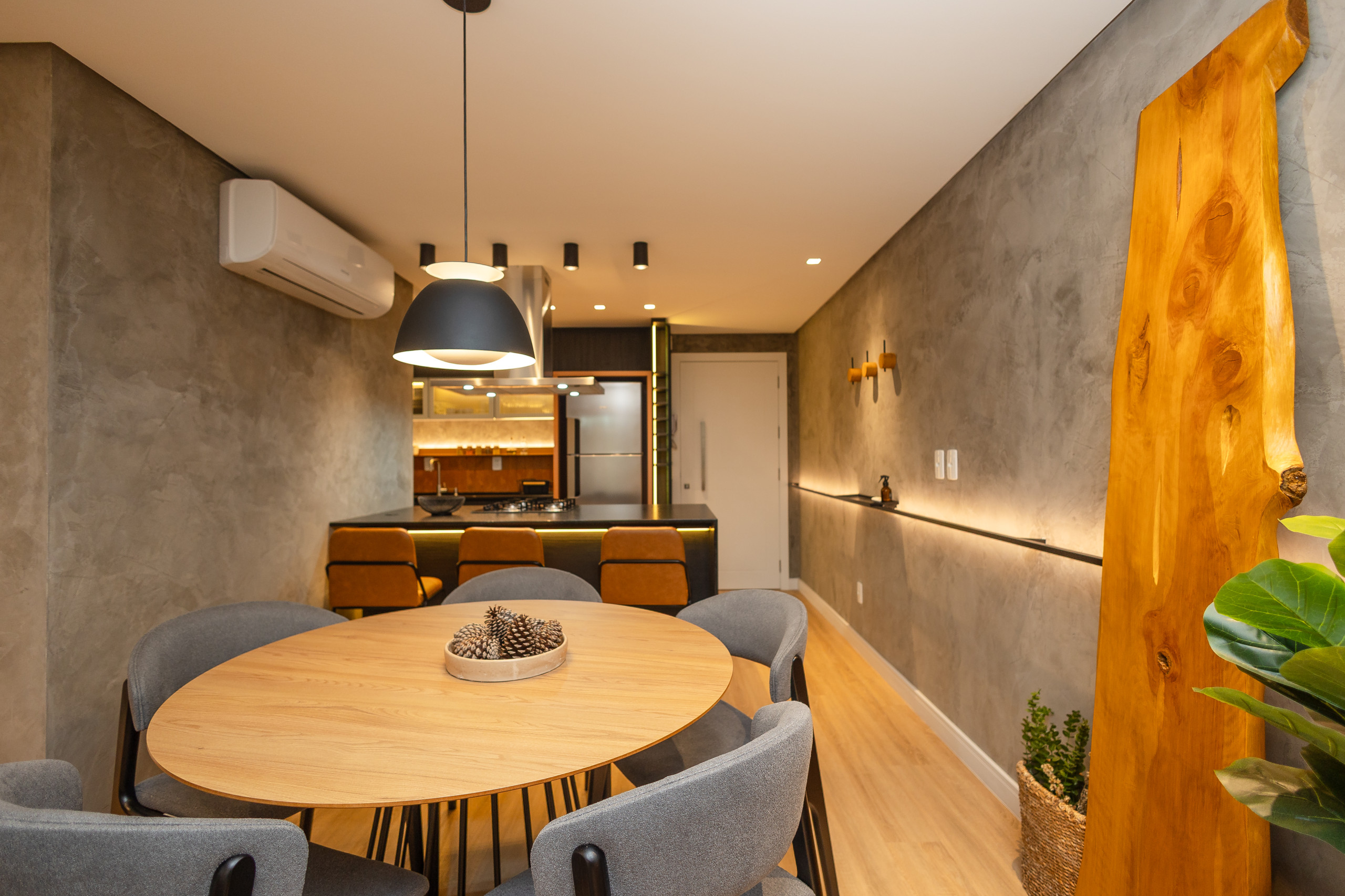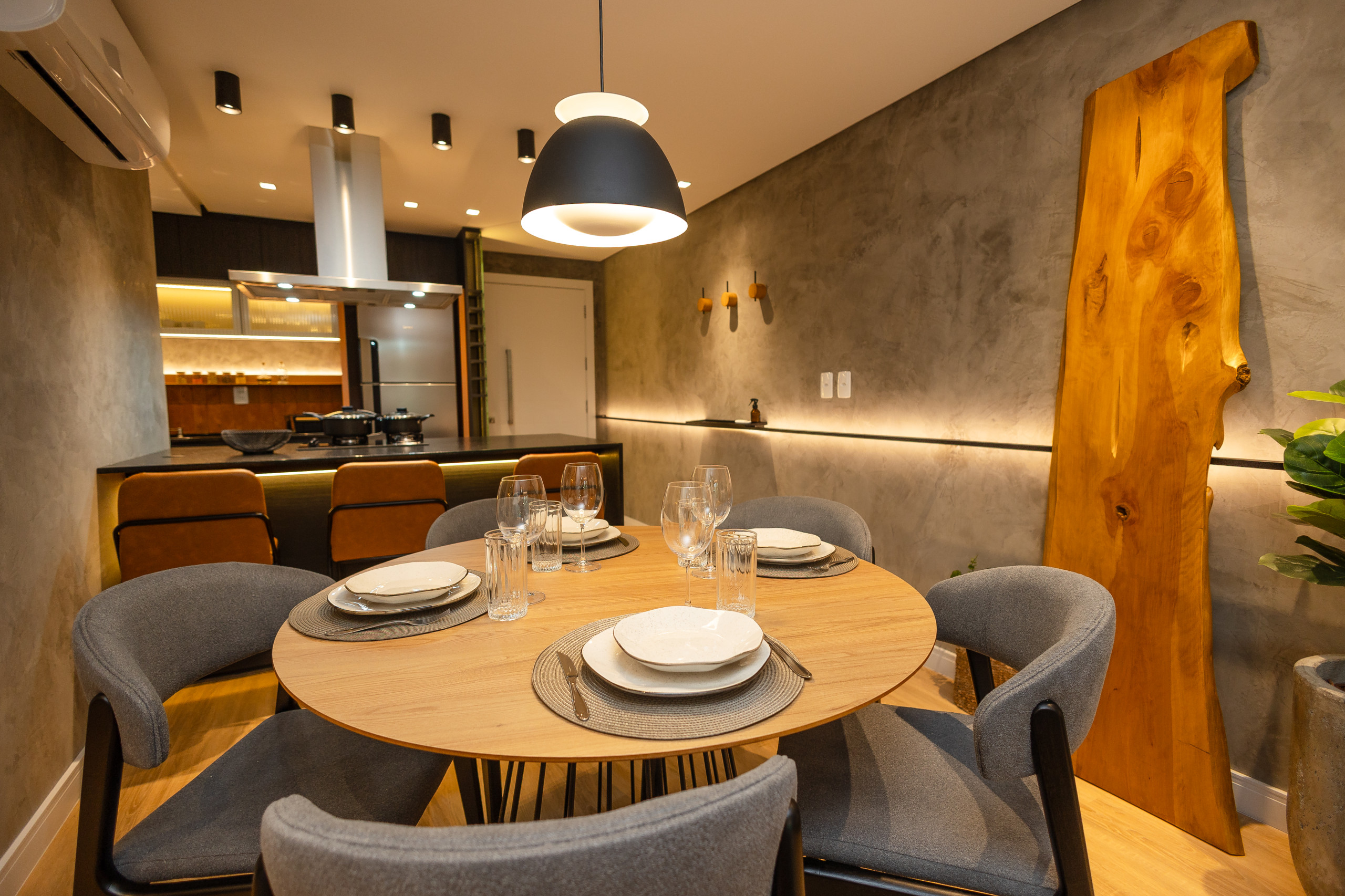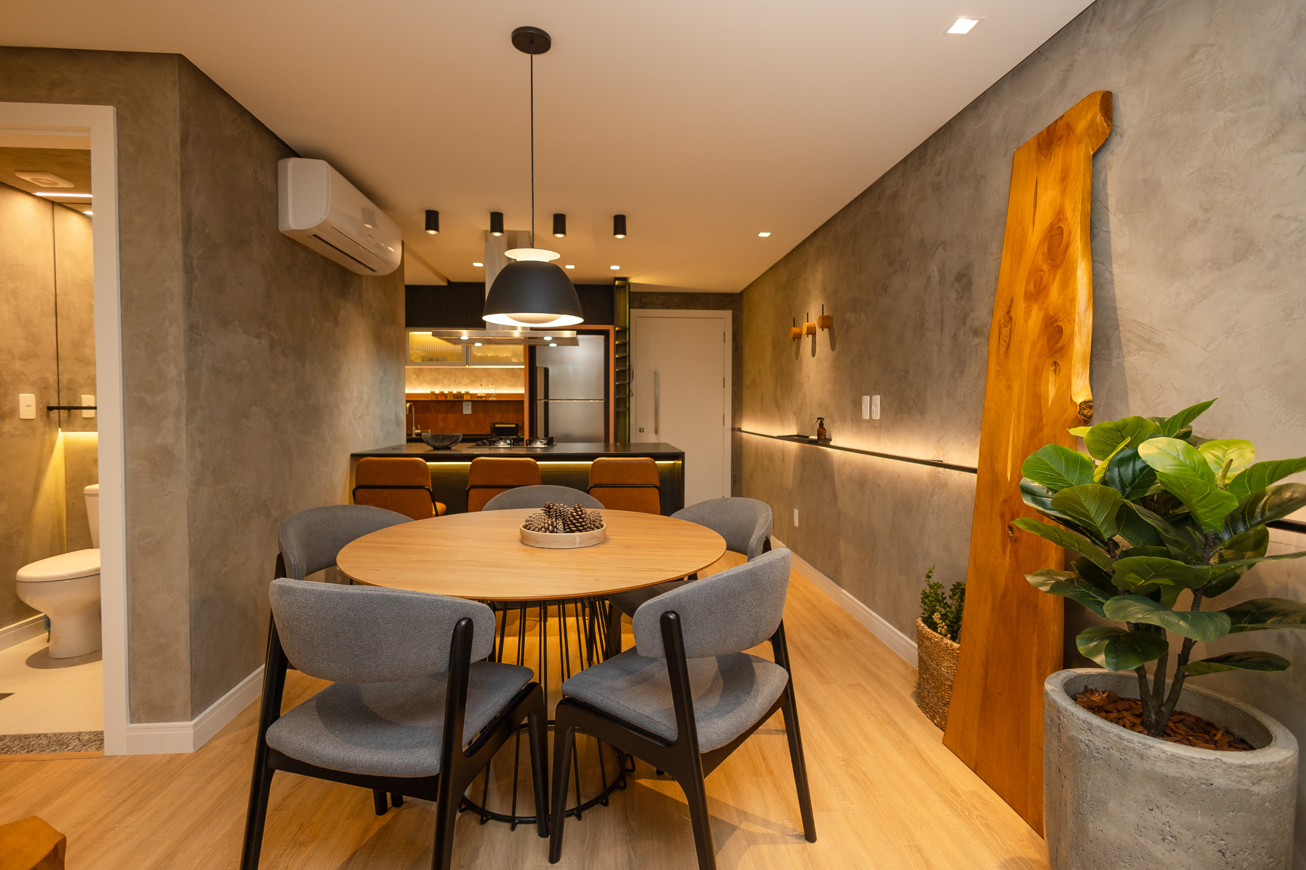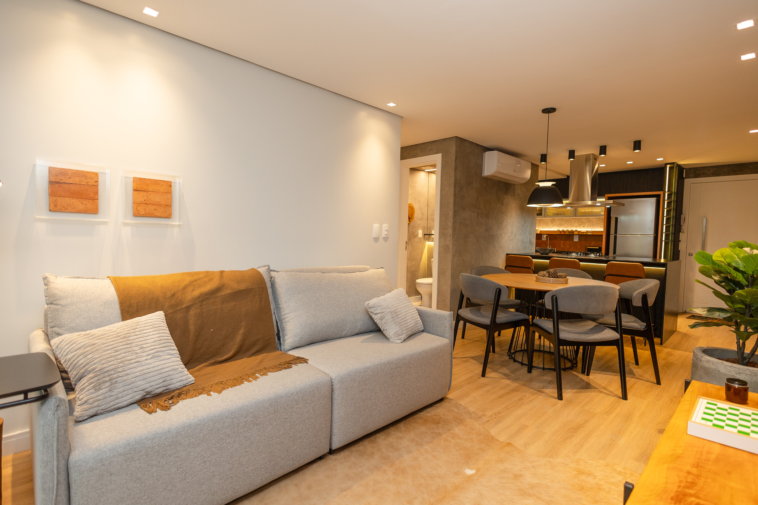 O living conta com três ambientes (cozinha, estar e jantar) com churrasqueira e sacada e vai proporcionar um espaço para que desfrutem os momentos de descontração em grupo com muito bom gosto! Além de split Q/F conta com calefator, tornando especiais os dias de verão e inverno! Ainda traz um lavabo na área social para mais praticidade!
