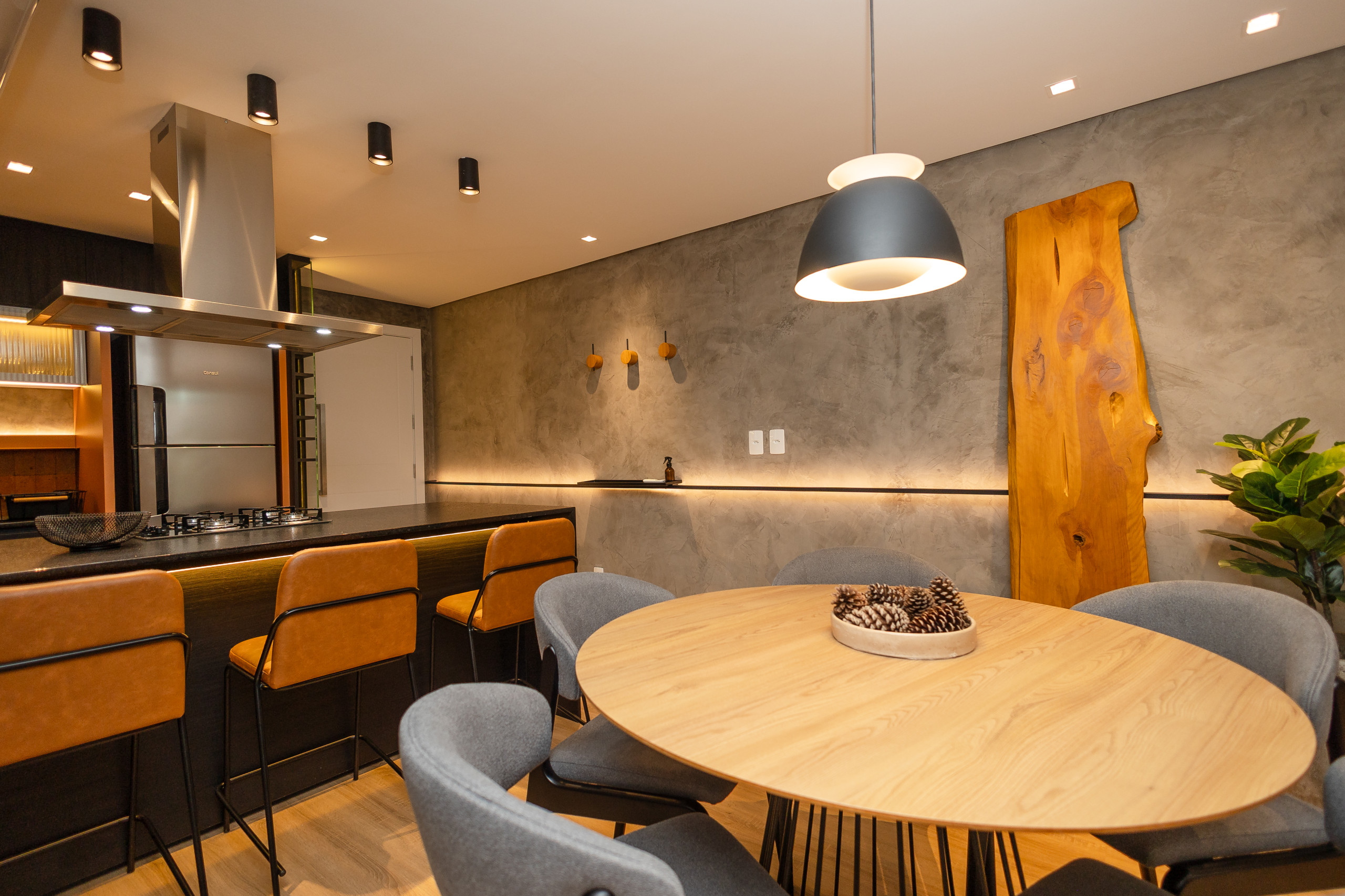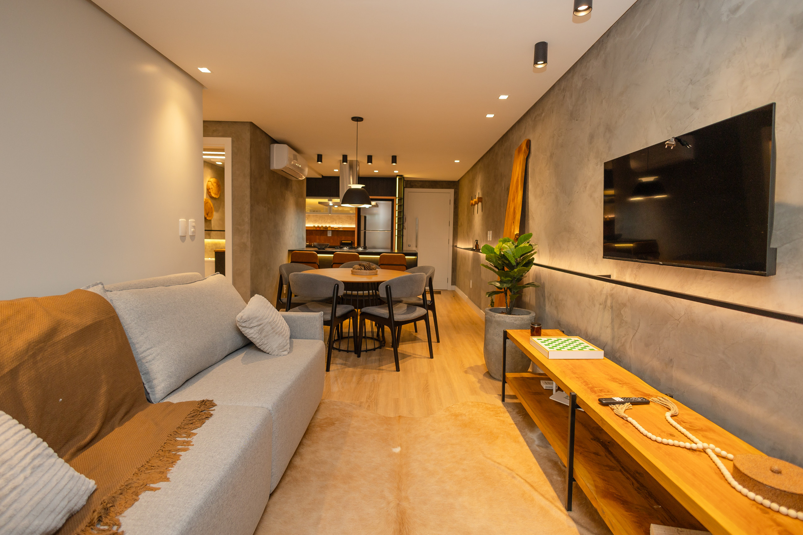 O living conta com três ambientes (cozinha, estar e jantar) com churrasqueira e vai proporcionar um espaço para que aproveitem os momentos de descontração em grupo, com muito bom gosto! Além de split Q/f também conta calefação, tornando especiais os dias de verão e inverno!