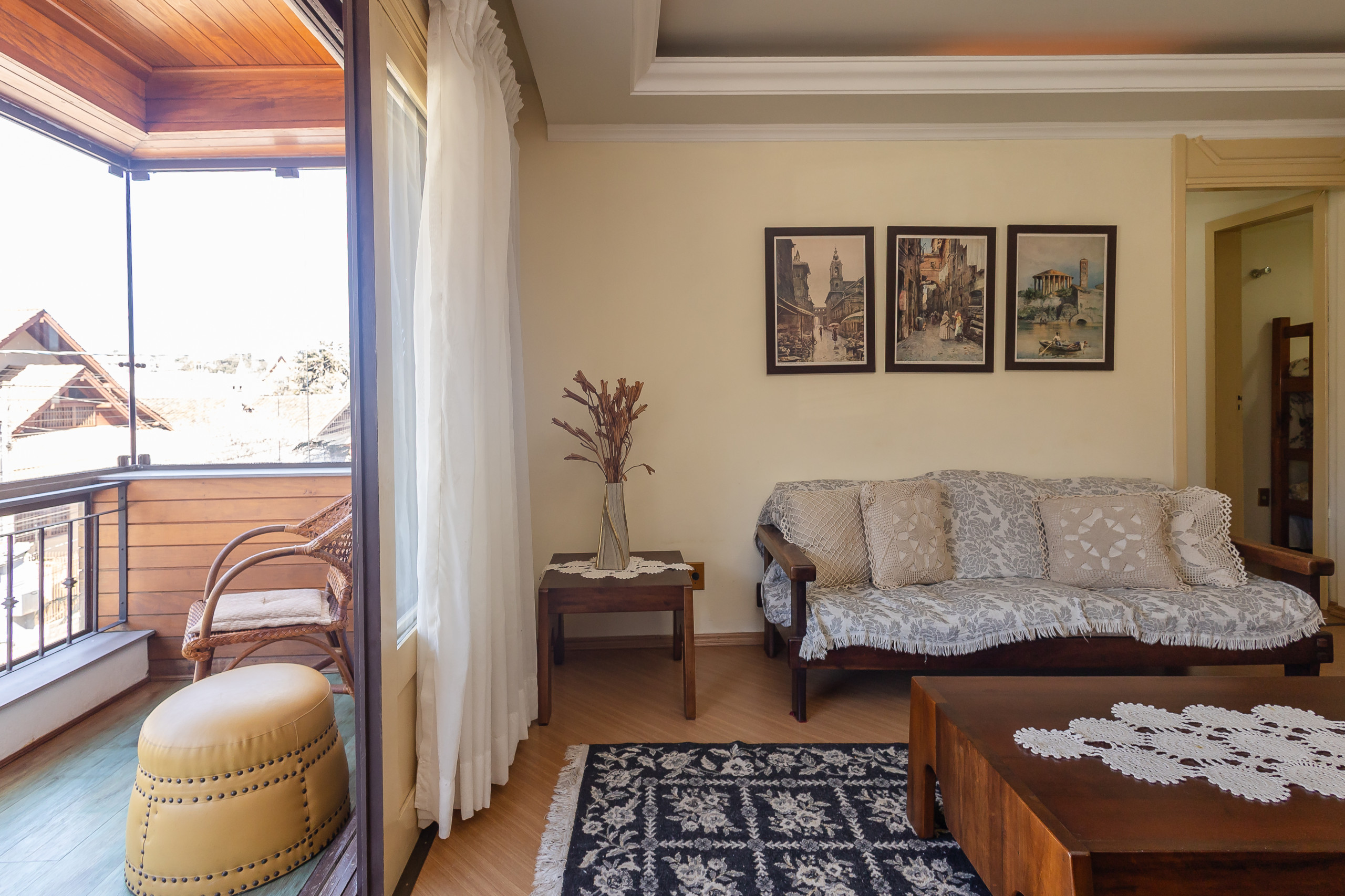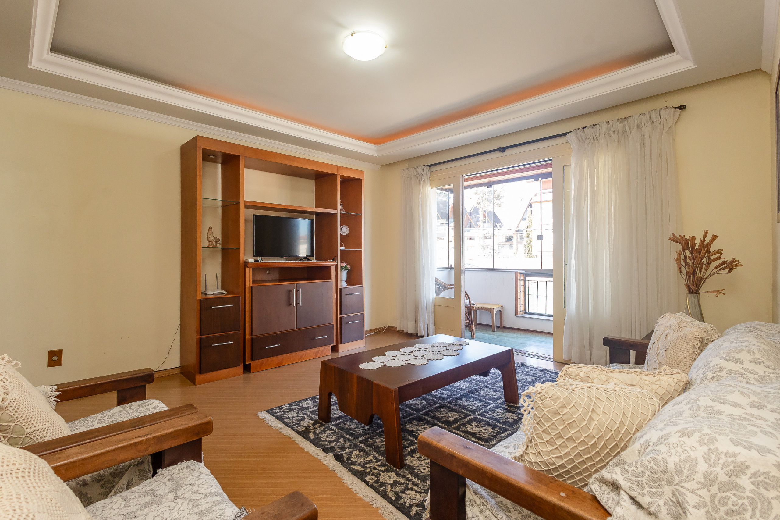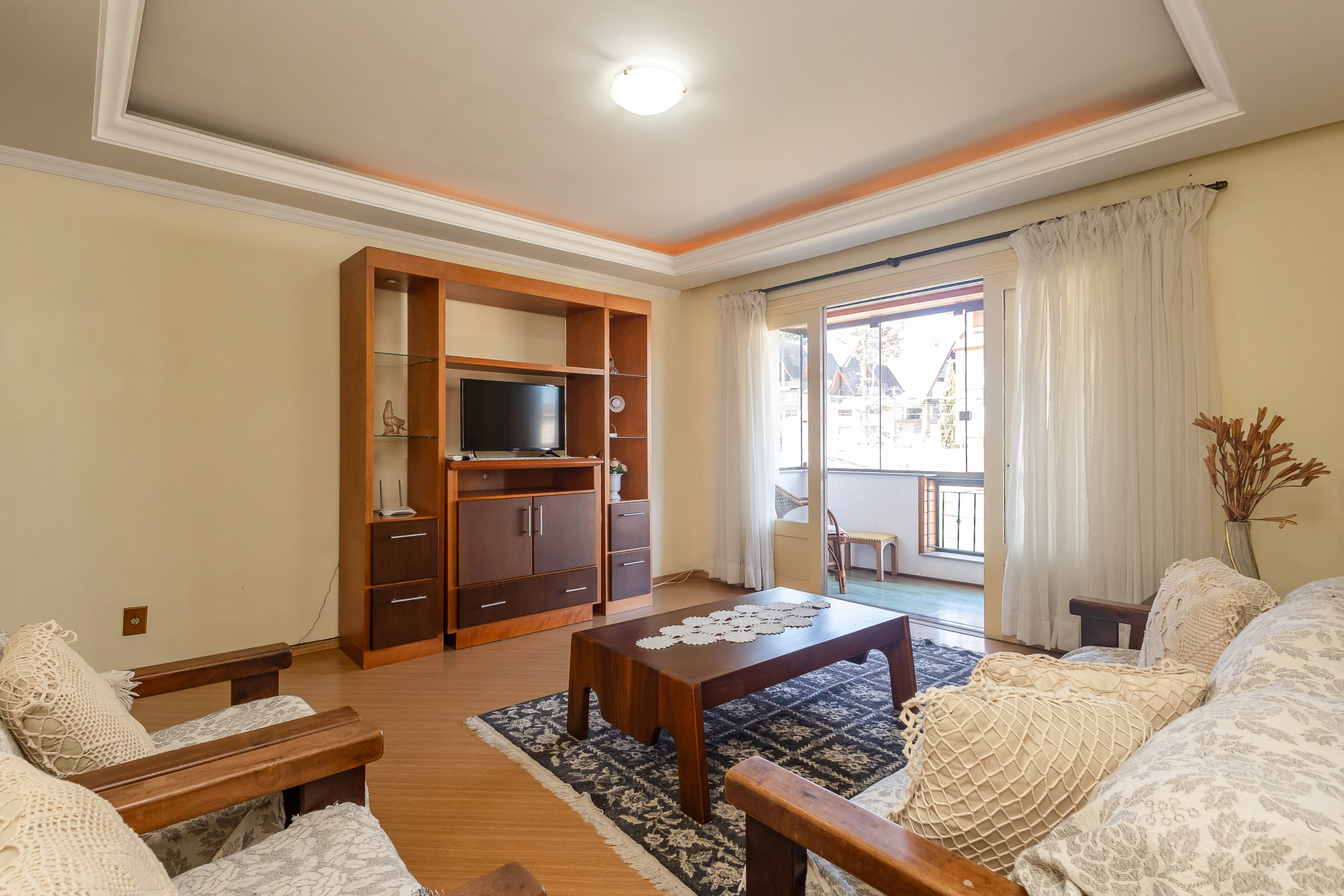 Charmoso e ensolarado apartamento com 2 suítes no coração de Gramado! Localizado a 300m da Rua Coberta (praticamente na esquina!), este imóvel irá permitir que você aproveite o centro deixando o carro na garagem e curtindo todas as facilidades e delícias que a cidade oferece! São 2 suítes, living integrado ao estar e jantar com churrasqueira, cozinha completa e equipada, lavanderia com lavadora e secadora de roupas, ambientes climatizados com splits quente/frio, wi-fi de alta velocidade e uma vaga de garagem.