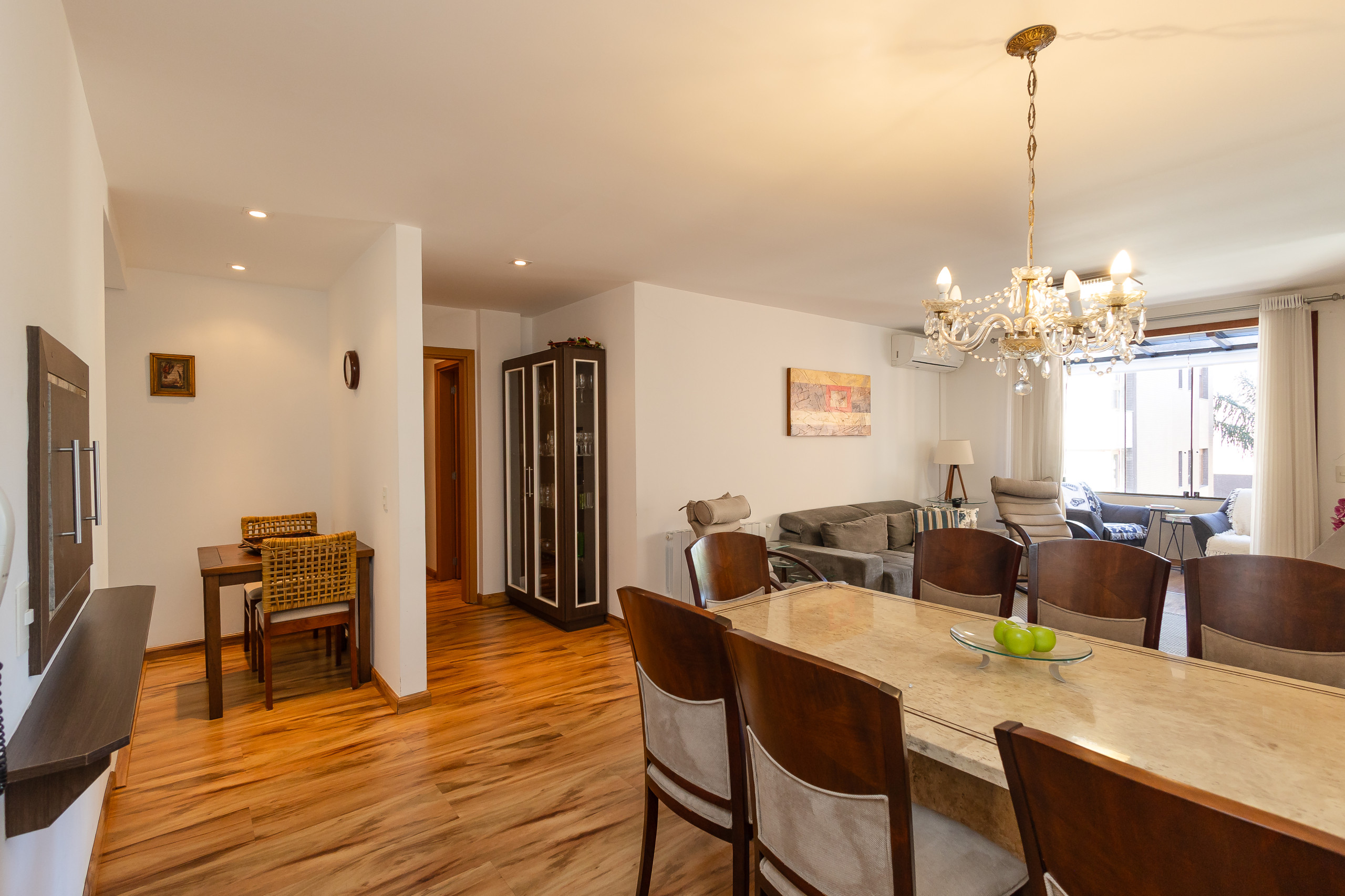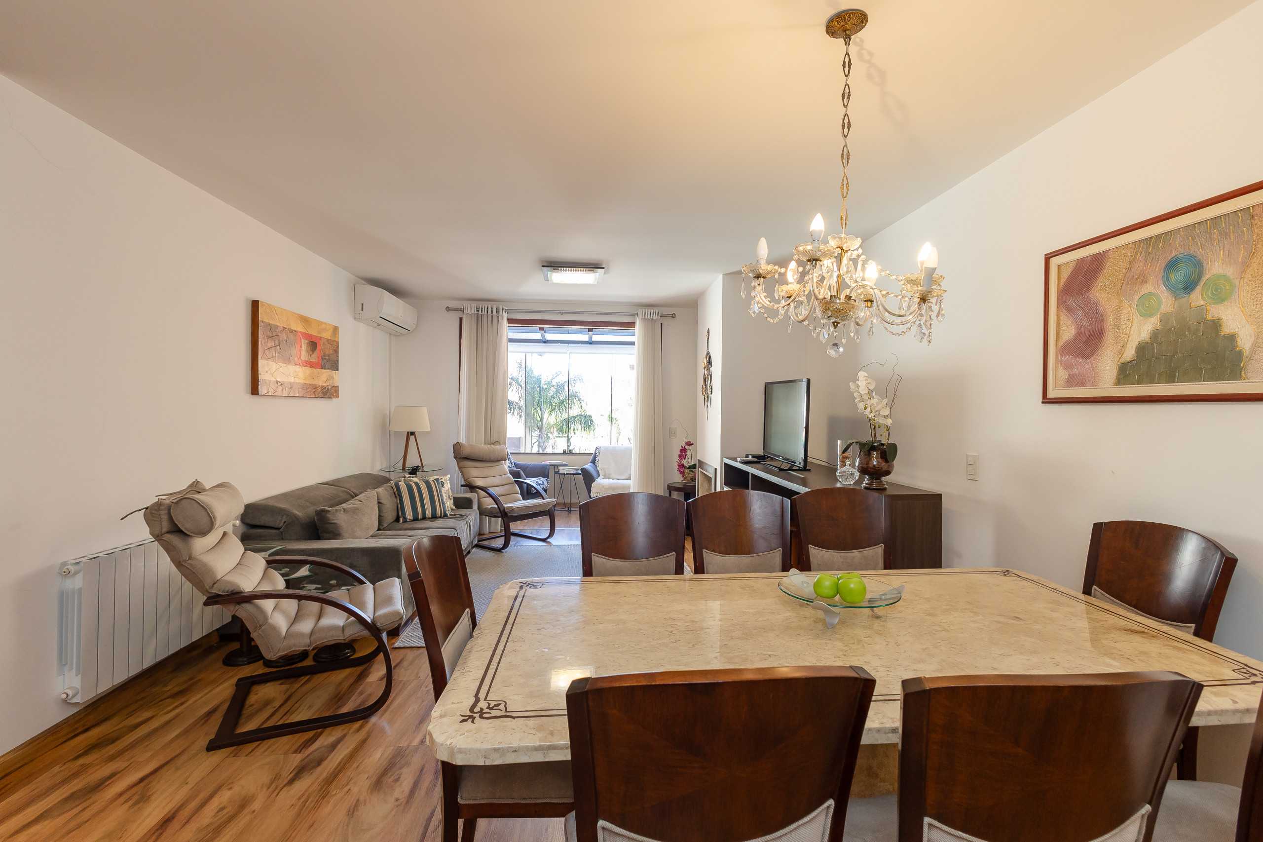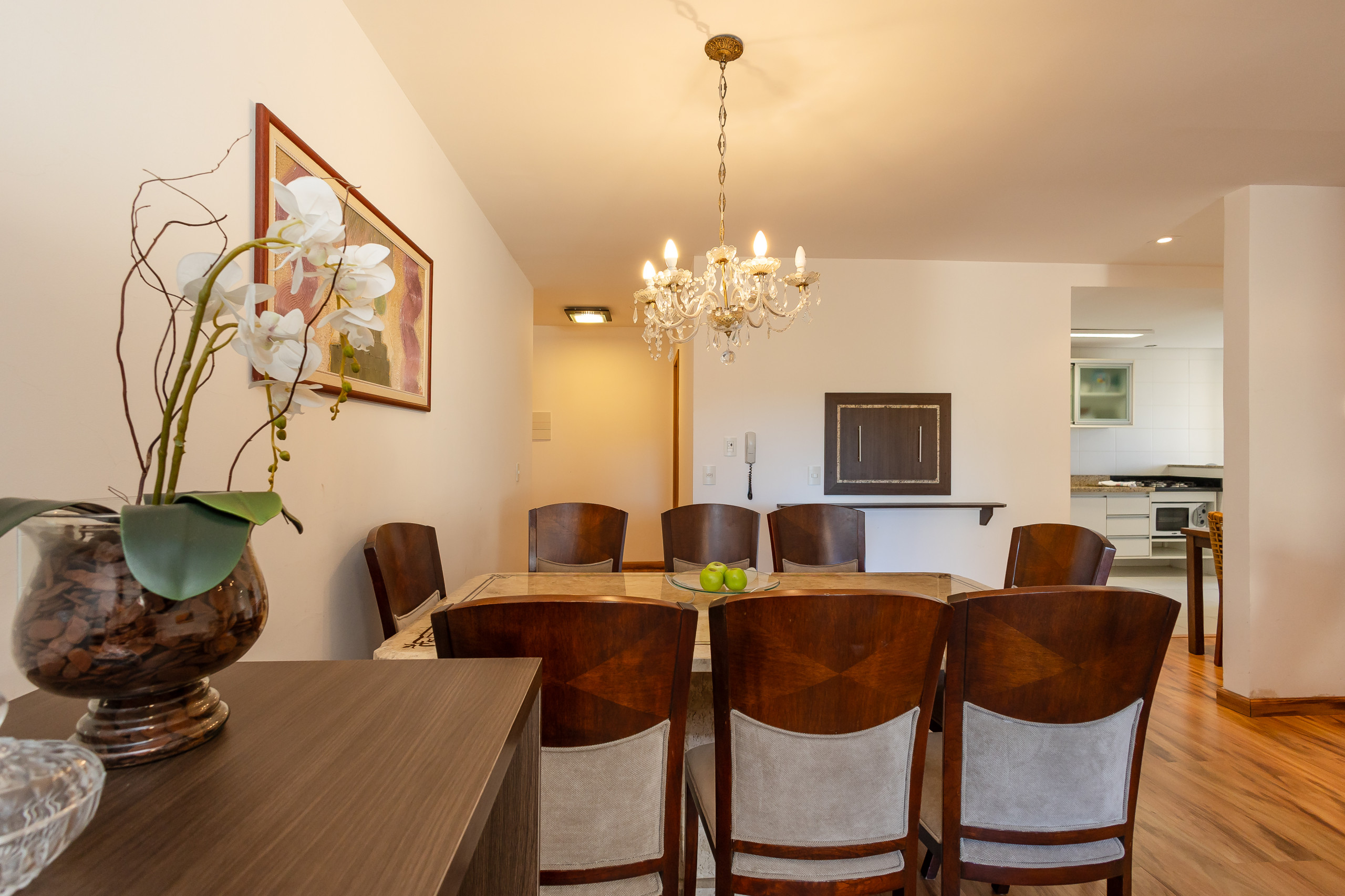 Apartamento com 117m² de área privativa, 2 suítes, lavabo, amplo estar integrado com jantar e área gourmet, cozinha muito espaçosa, área de serviço. Dispõe de 2 vagas de garagem em condomínio elevador e um maravilhoso jardim.