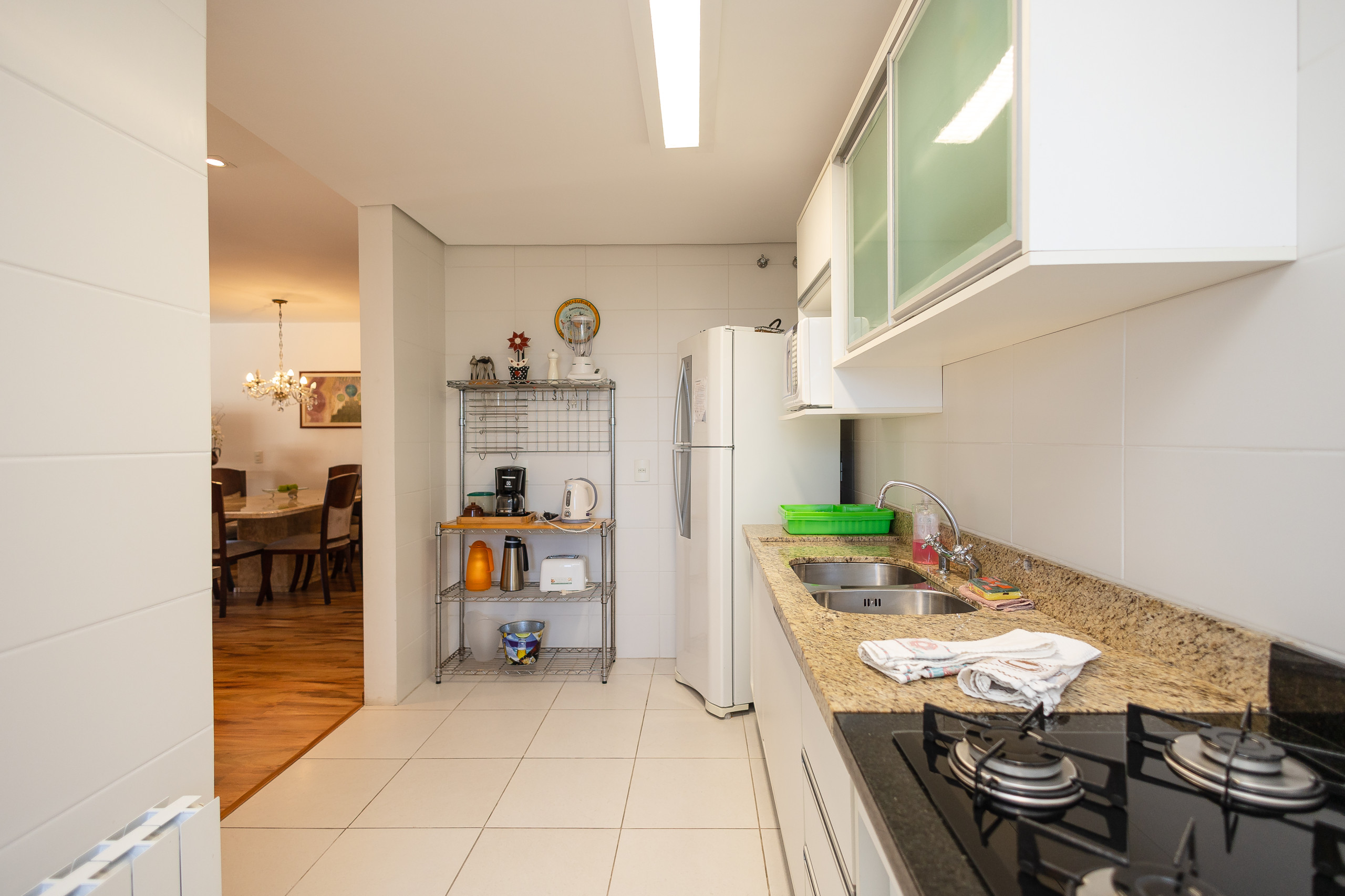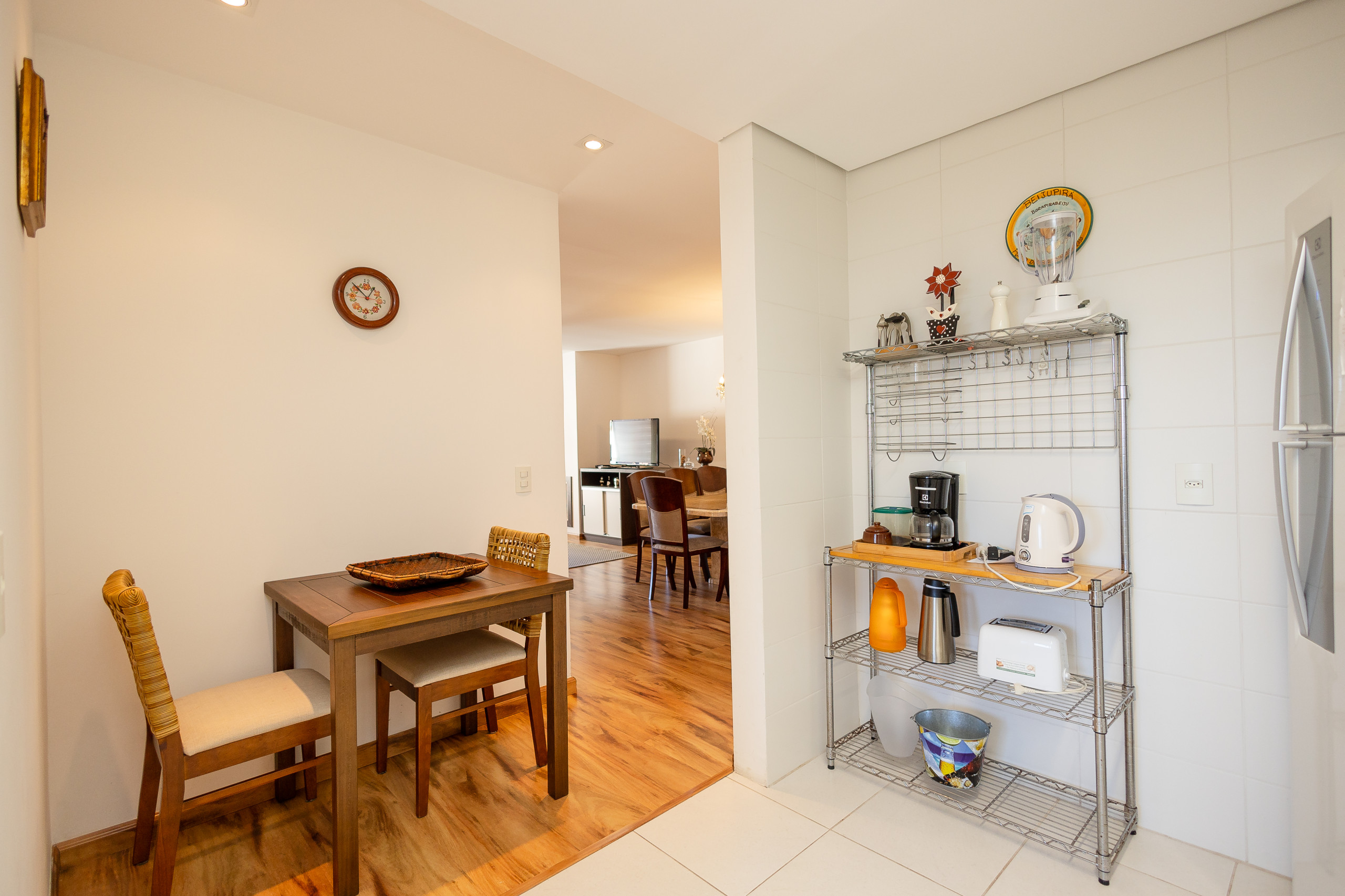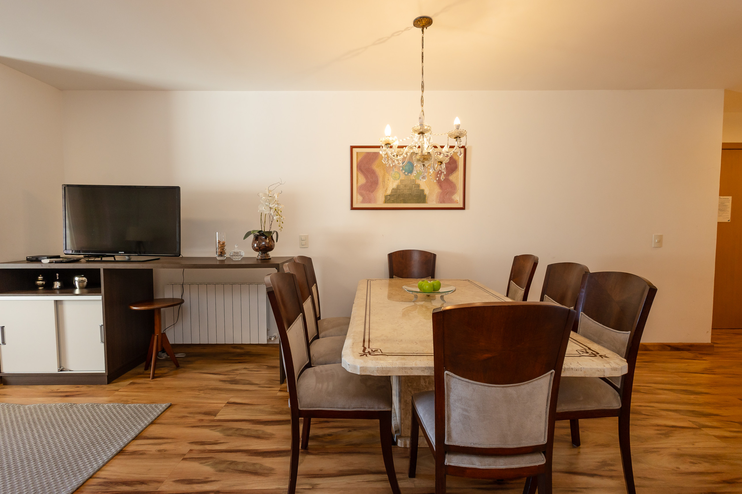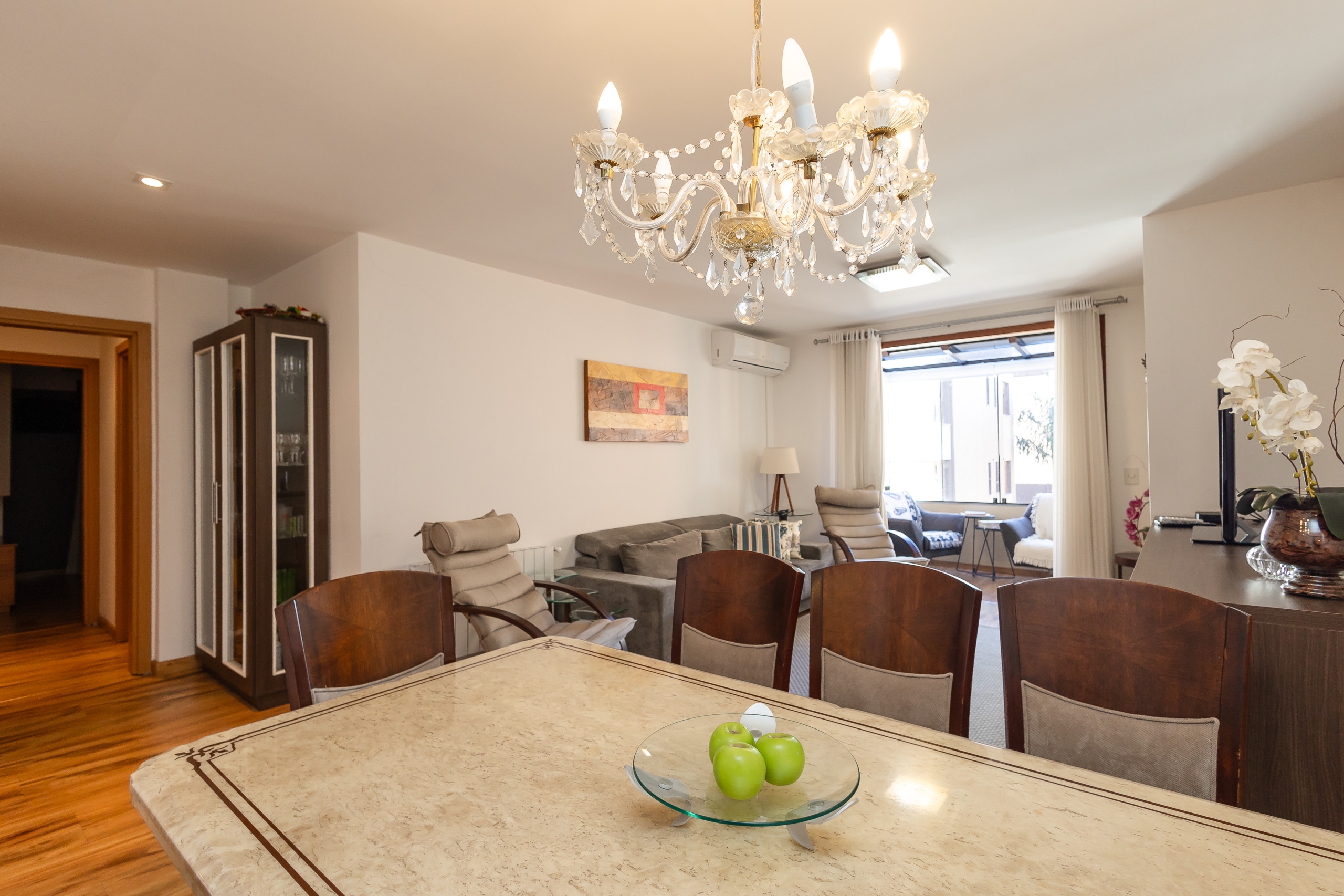 Apartamento com 117m² de área privativa, 2 suítes, lavabo, amplo estar integrado com jantar e área gourmet, cozinha muito espaçosa, área de serviço. Dispõe de 2 vagas de garagem em condomínio elevador e um maravilhoso jardim.