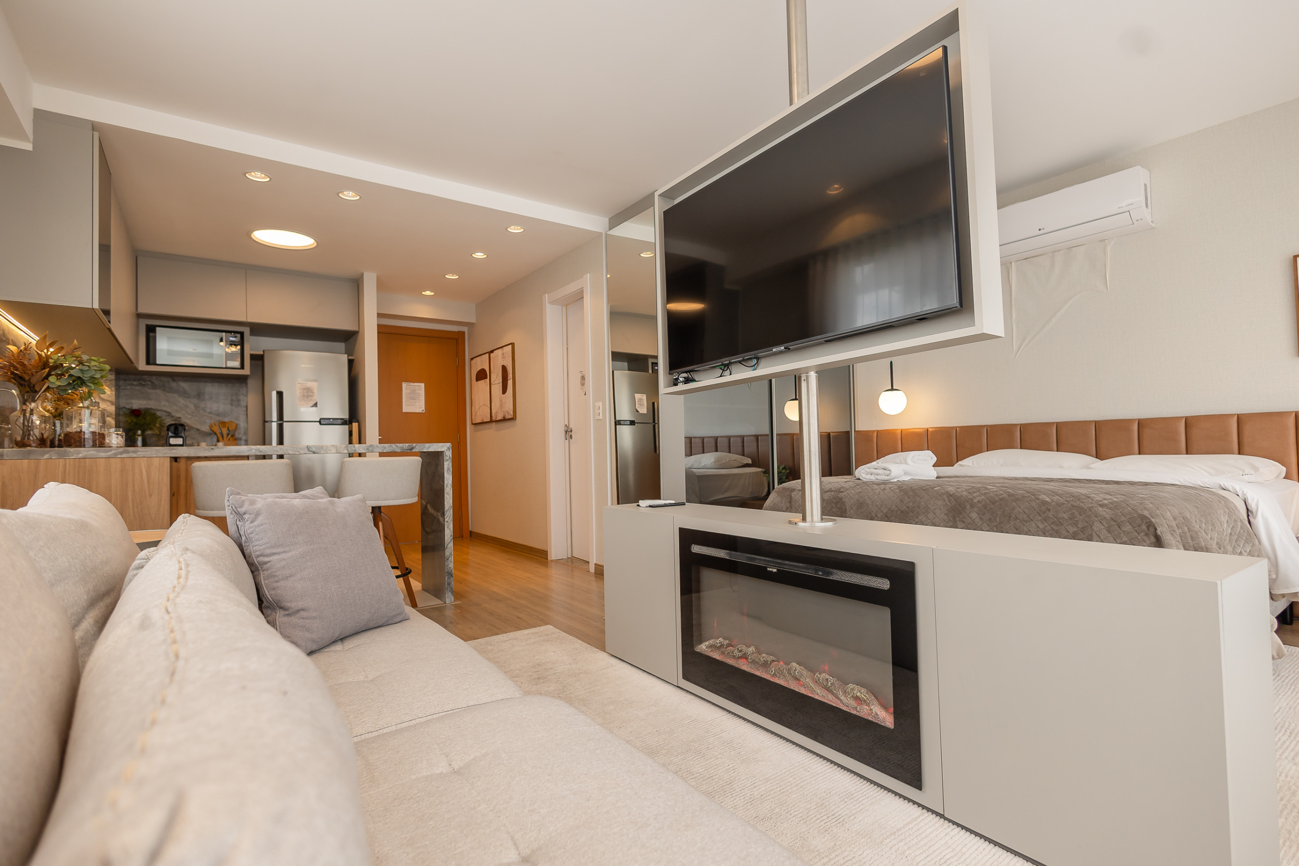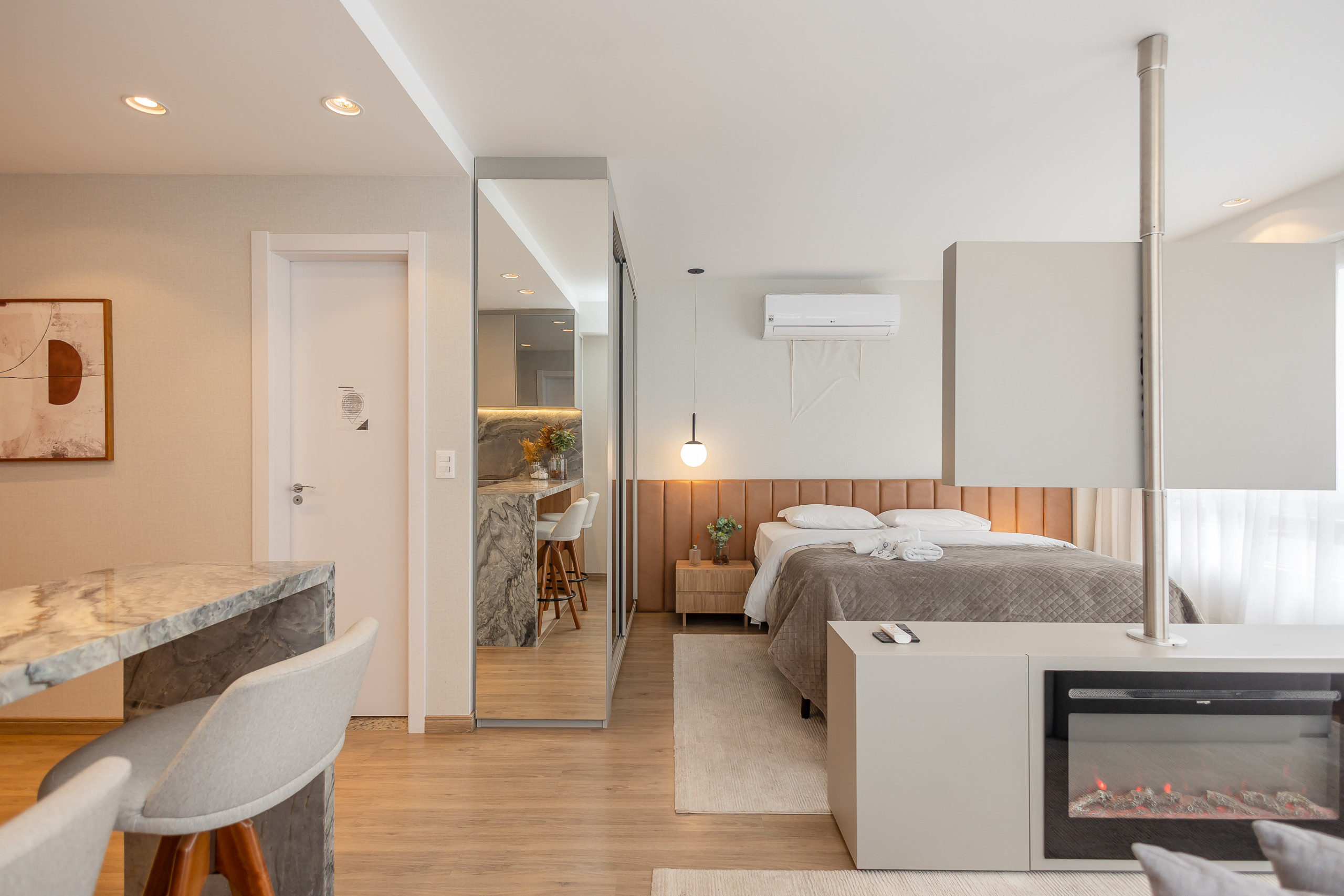 Belíssimo Estúdio no cobiçado empreendimento Vita Boulevard, em Gramado! Apartamento com 37m² de área privativa, decorado por arquiteto, com excecional aproveitamento do espaço interno! Possui espaços definidos com quarto, sala e cozinha, mais a ampla casa de banho. Dispõe de lareira ecológica. Muito iluminado e ventilado. Possui um lugar de estacionamento.