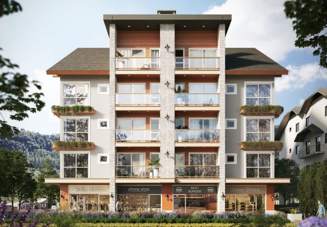 Empreendimento com unidades 1 e 2 suítes, lavabo e sacada. Condomínio fechado, composto por 24 apartamentos. Localizado em bairro residencial com total infraestrutura, próximo ao centro de Gramado! Perfeito para MORAR ou INVESTIR!