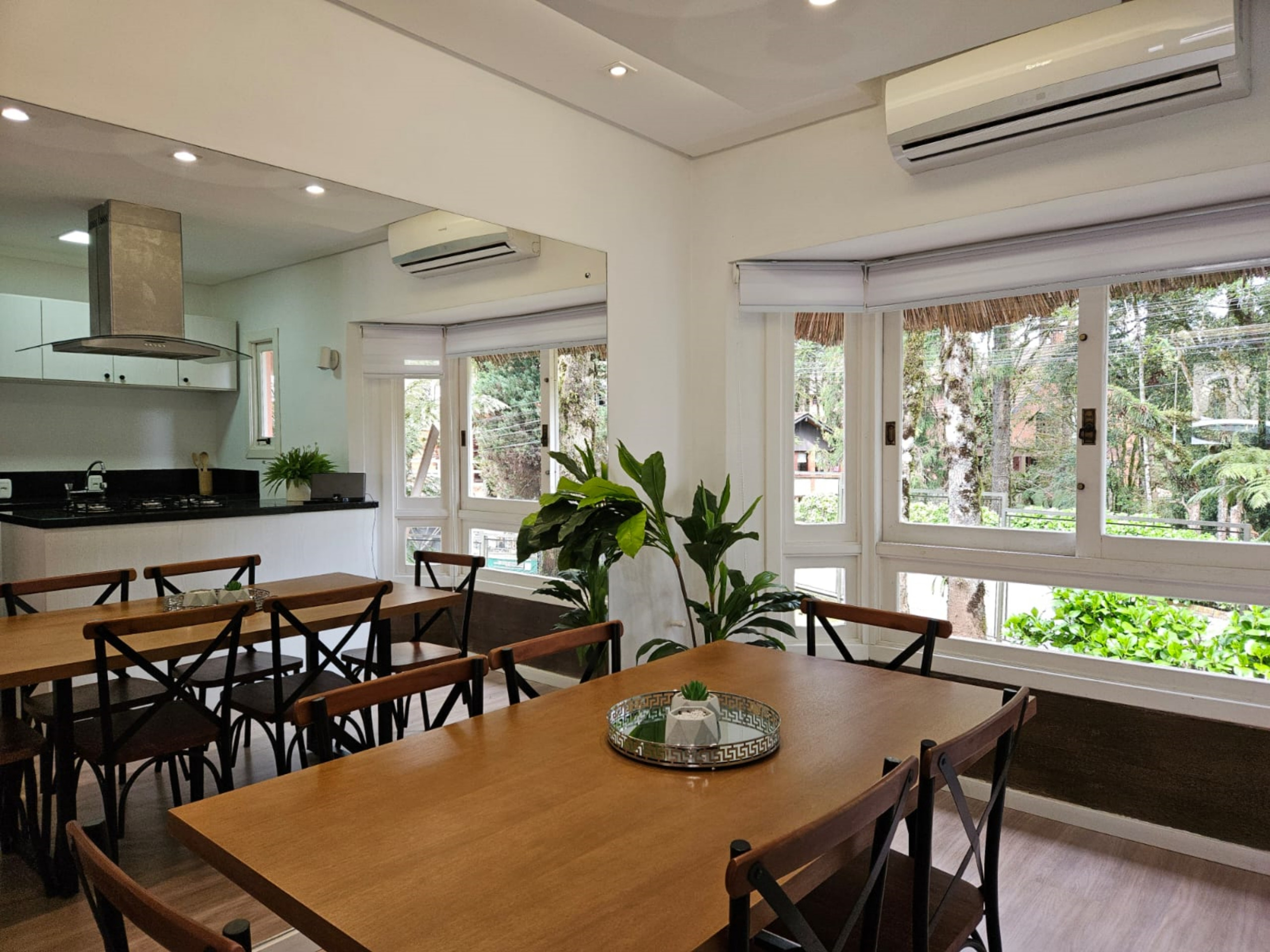 Casa geminada com 75m² de área privativa, possui 2 suítes, lavabo, living, jantar e cozinha integrados. Uma vaga de garagem. Muito aconchegante, foi decorada com muito carinho e bom gosto! Localizada a cerca de 800m do Lago Negro e a cerca de 1600m da Rua Coberta, rodeada de muito verde, excelente como moradia ou utilizada para locação por temporada. Perfeita para quem busca sossego e tranquilidade, mas junto a todas as facilidades e delícias que a cidade oferece! Ótimo rendimento em locação por temporada! Entre em contacto pelo telefone/whatsapp que aparece ao lado para mais informações ou para agendar a sua visita!